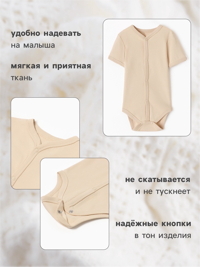 Габариты: 20 x 18 x 1 В боксе: 84 шт Для кого: Для девочки, Унисекс, Для мальчика Размер: 20 Рост, см: 56 Рекомендации по уходу: Стирка при 30 °С, Не отбеливать, Бережный режим глажки Страна: Узбекистан Состав: Хлопок 100% Материалы: хлопок Фасовка: по 1 шт Габариты товара: 20 см × 22 см × 1 см Сертификат: ЕАС Цвет: Бежевый Назначение: Повседневная Ткань: Интерлок-пенье Плотность, г/м²: 180 Сезон: Всесезонный Вид застёжки: Кнопка Тематика: Однотонная Длина рукава: Короткий Вырез горловины: Круглый Декоративные элементы: Без элементов Состав ткани: Хлопок Комментарии к товару
