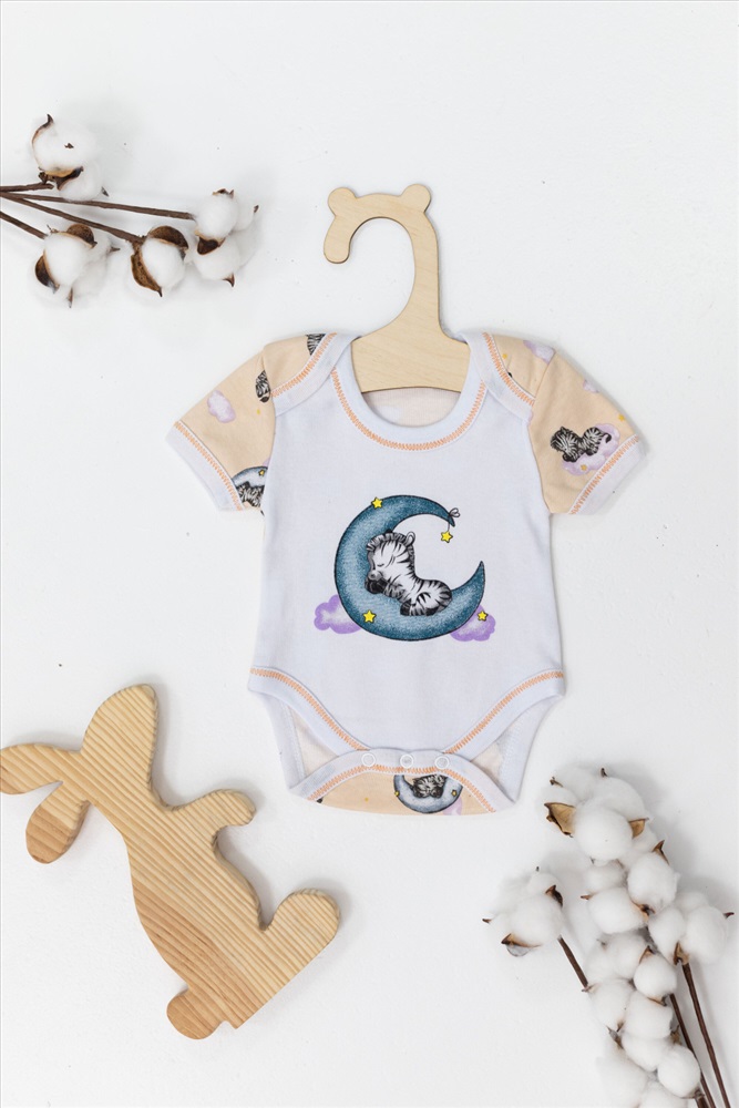 Сезон: Летний Состав: Хлопок 100% Цвет Номенклатуры: белый Боди из интерлока. Короткий рукав, снизу застёжка на кнопки. Спереди нанесён принт. Комментарии к товару