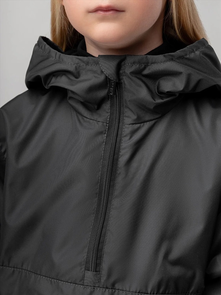 Стильная ветровка анорак для детей. Материал верха: Дюспо, материал подклада хлопок 100 %, материал подклада на рукавах таффета. Материал Дюспо: водоотталкивающий, воздухообменный и ветрозащитный. Детали: сквозные боковые карманы, несъемный капюшон на стойке закрывает шею.Температурный режим: от +10 гр. зависимости от индивидуального теплообмена ребенка и промежуточного слоя одежды