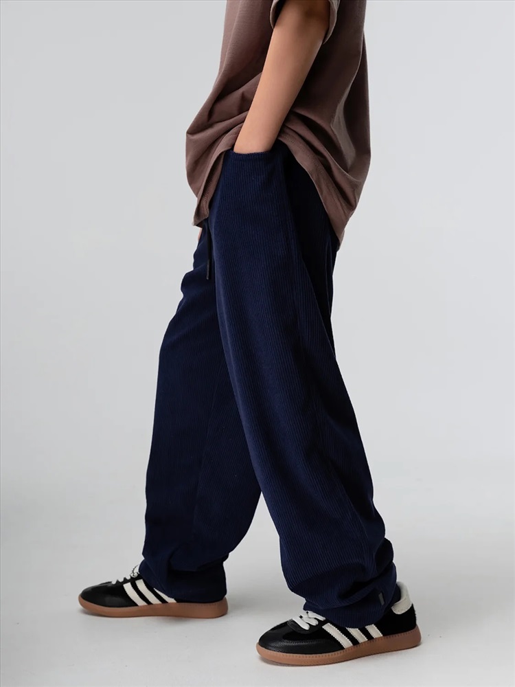 Свободные вельветовые брюки, расширенные в бёдрах и заужены к низу. Брюки со шнурком регулирующий объём в поясе.