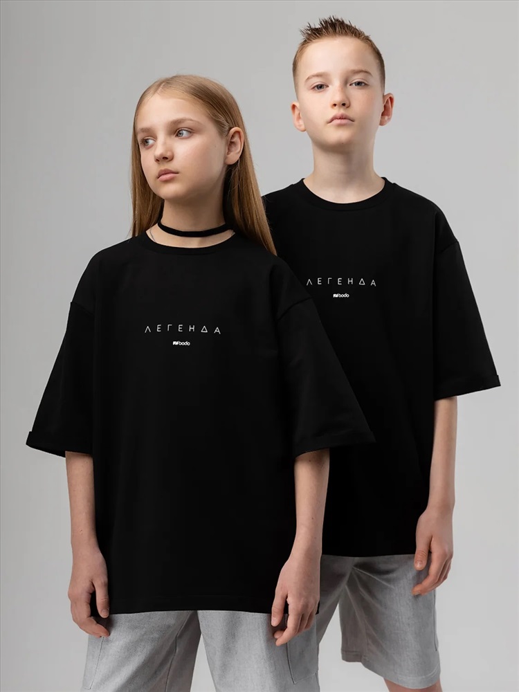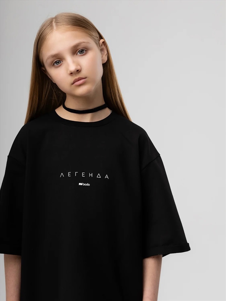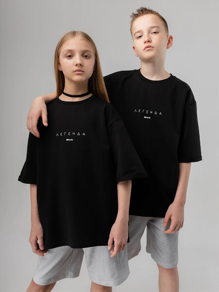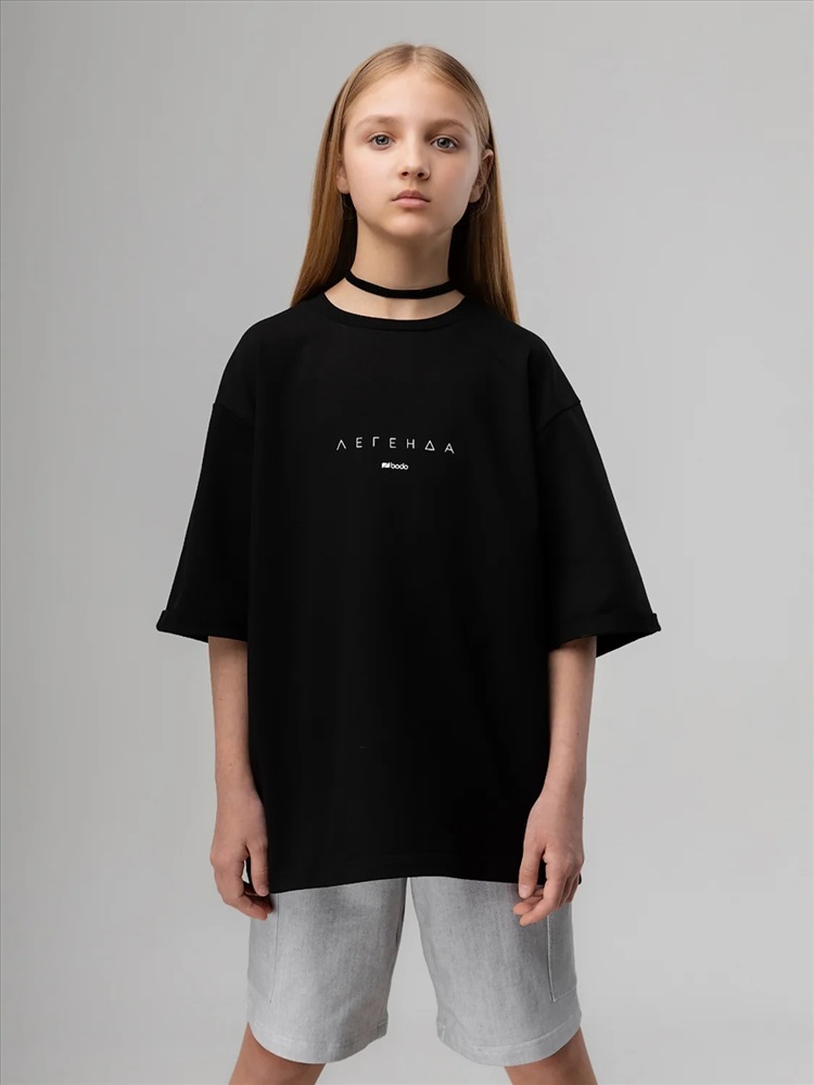 Футболка для детей школьного возраста. Футболка свободного силуэта с втачным коротким рукавом. Горловина футболки округлой формы. Низ изделия прямой. Состав: футер двухнитка 92% хлопок 8% лайкра