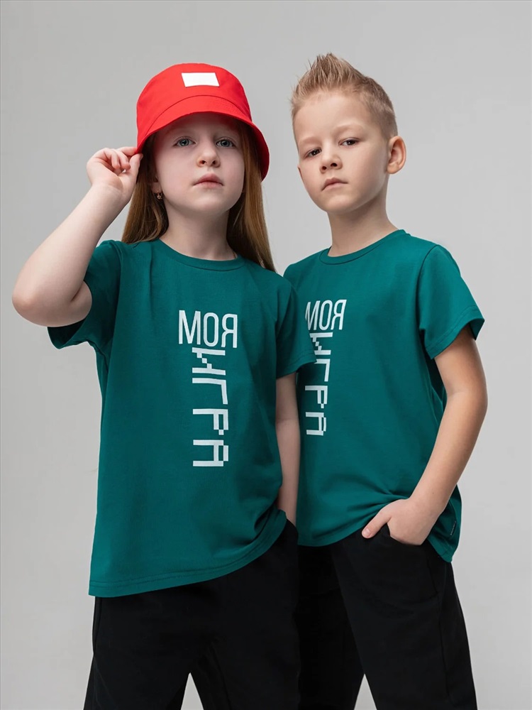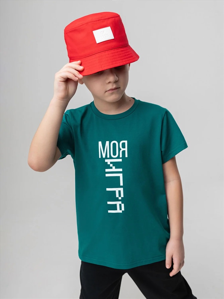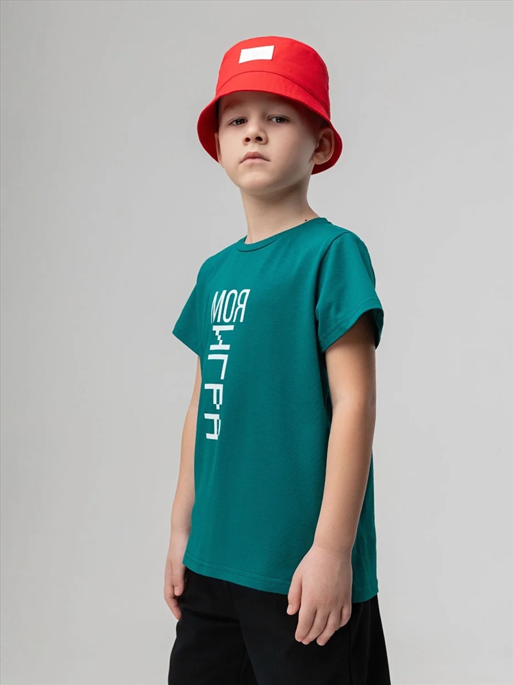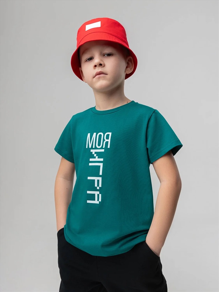 Детская футболка. Детали: короткие рукава, полуприлегающий покрой, округлый вырез горловины. Состав: кулирная гладь 92% хлопок 8% лайкра