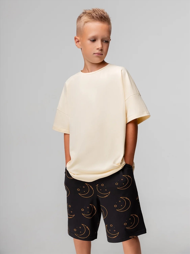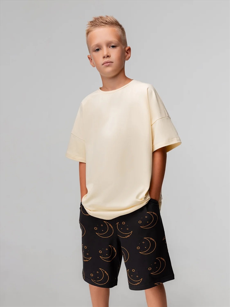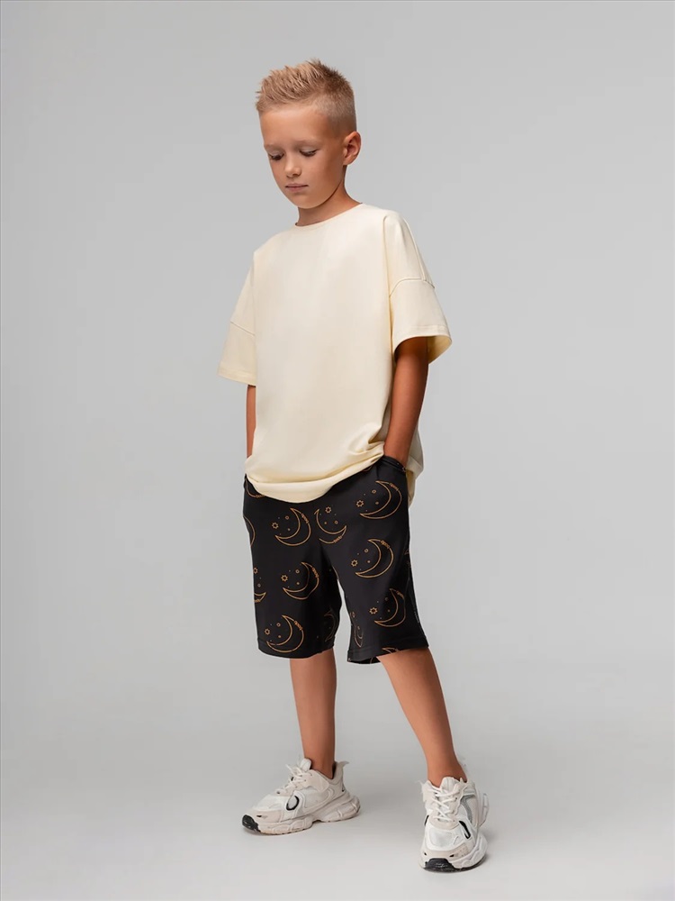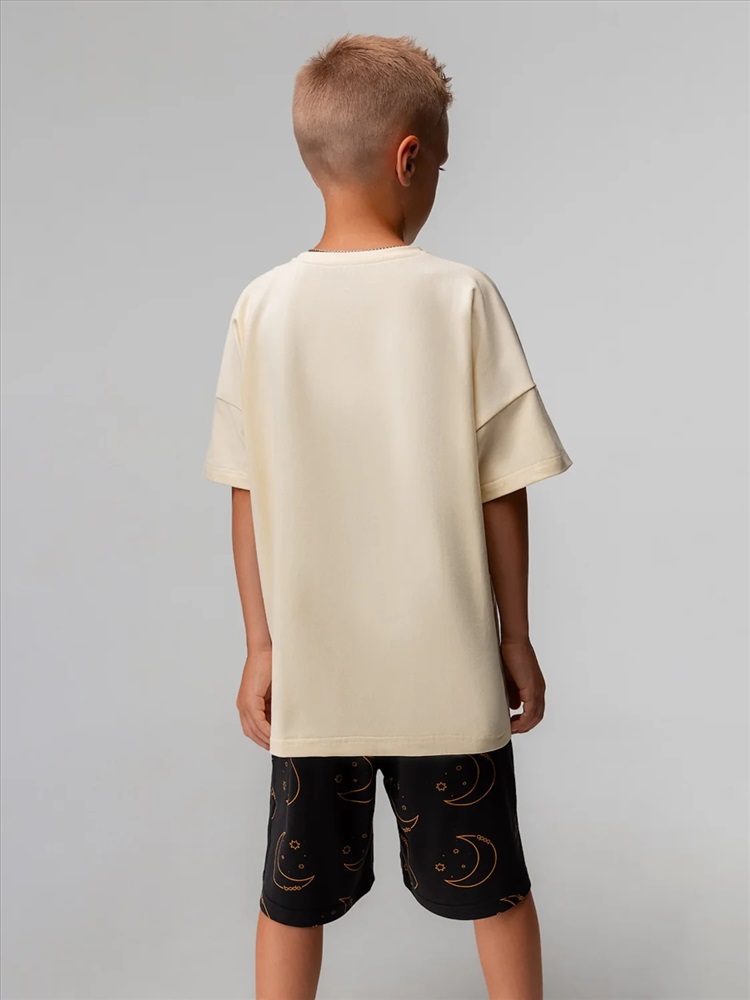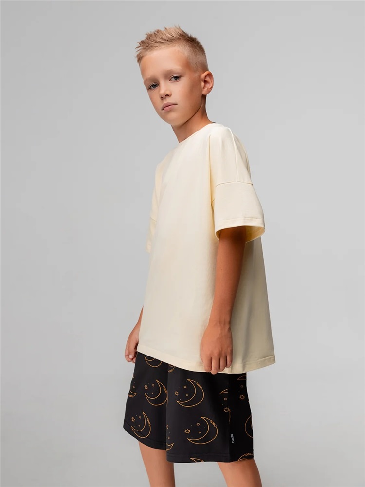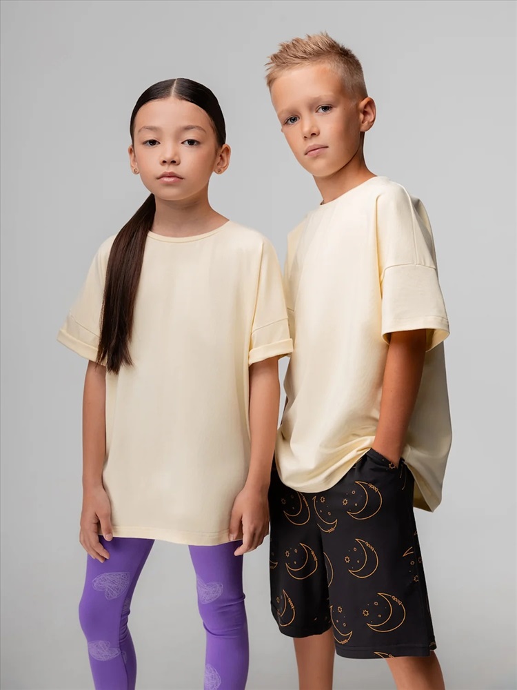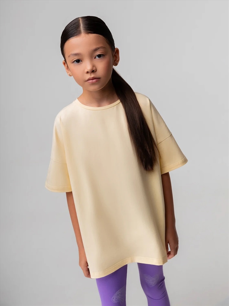 Футболка оверсайз детская. Настоятельно рекомендуем брать свой размер, так как в крой уже заложен оверсайз. Детали: короткий спущенный рукав, свободный покрой, округлый вырез горловины.