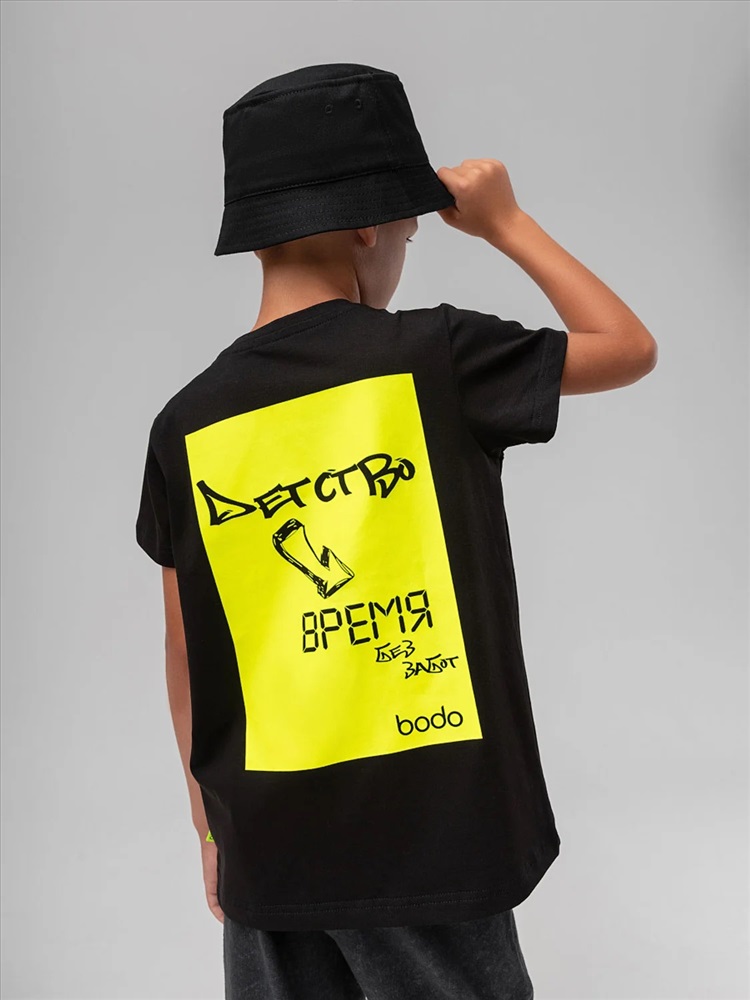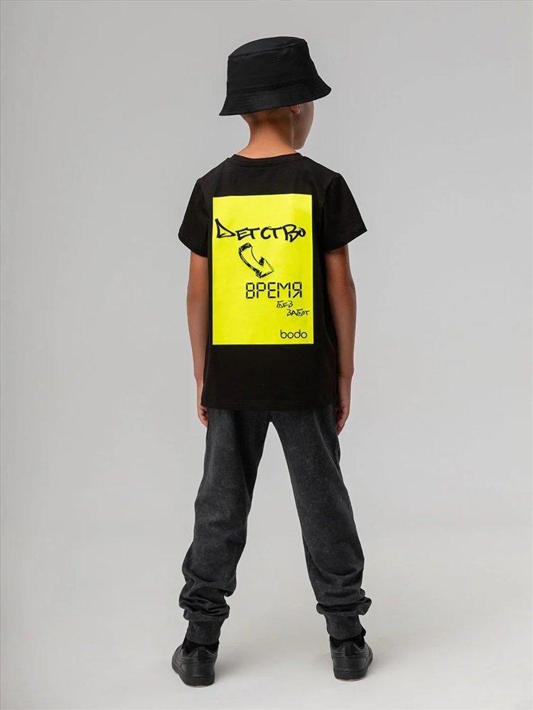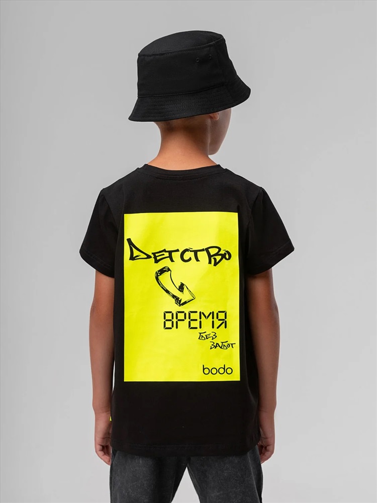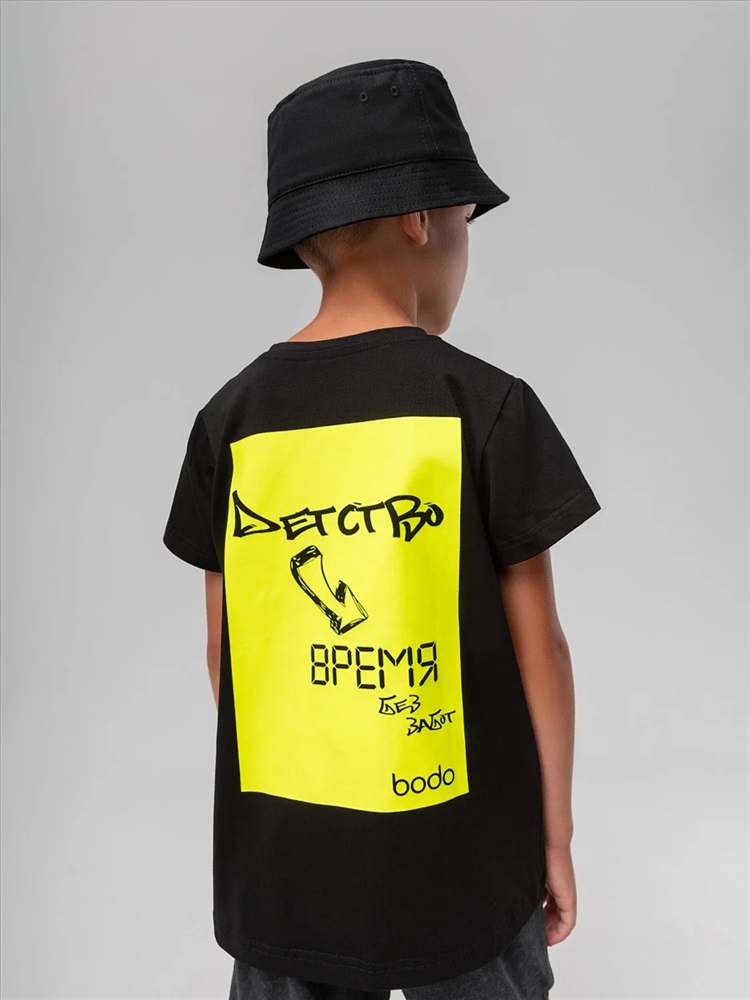 Производитель: Bodo; Российский размер: 98, 104; Возраст: 2,5-3; Обхват груди: 54-56; Обхват талии: 51-53; Обхват бедер: 55-57; Артикул поставщика: 4-430MU; Ткань: кулирная гладь; Состав: 92% хлопок 8% лайкра; Год: 2026; Страна: Россия Футболка свободного силуэта с коротким рукавом. Горловина футболки округлой формы. Низ изделия прямой. На спинке печать "Детство время без забот"