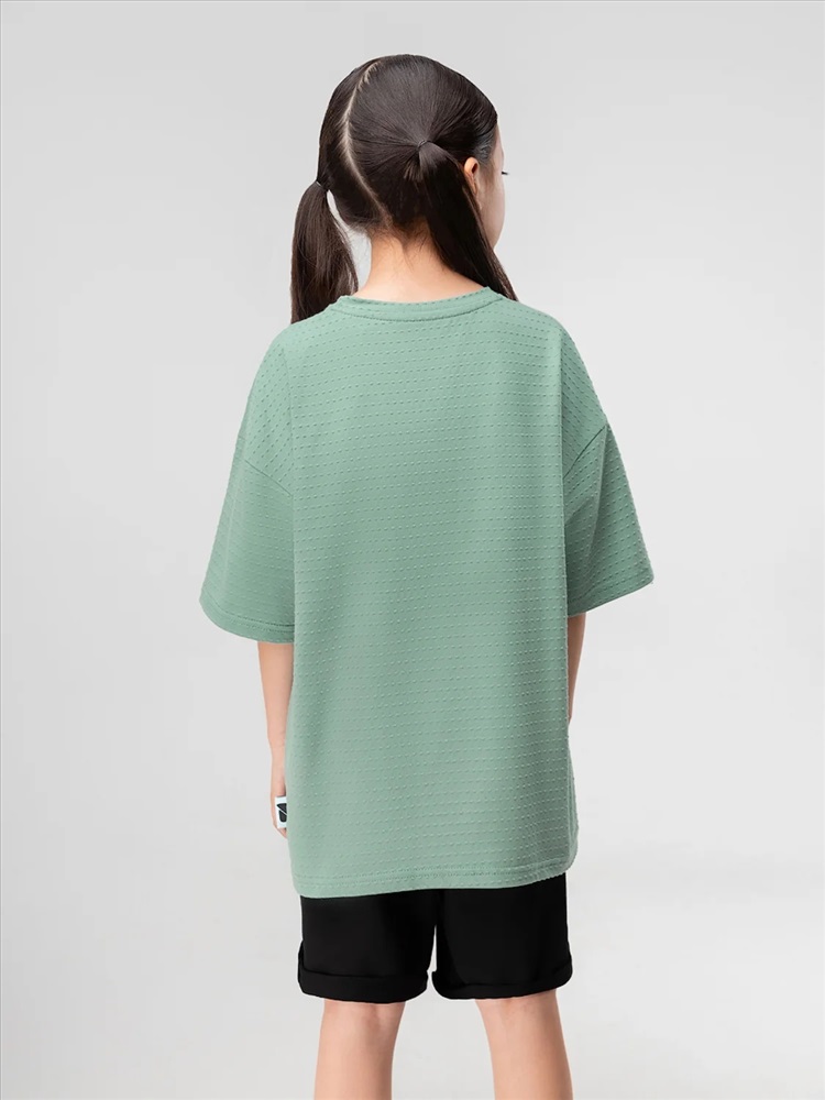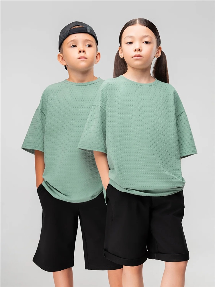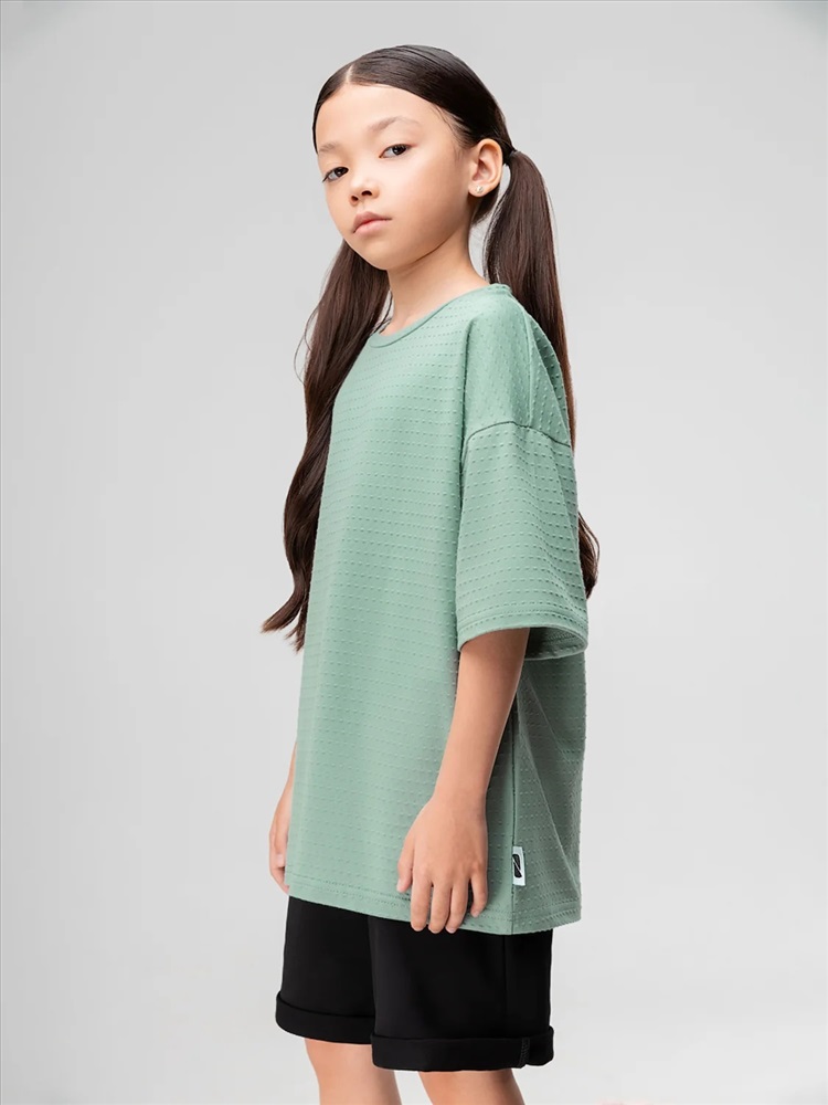 Производитель: Bodo; Российский размер: 98, 104; Возраст: 2,5-3; Обхват груди: 54-56; Обхват талии: 51-53; Обхват бедер: 55-57; Артикул поставщика: 4-466MU; Ткань: кулирная гладь; Состав: 92% хлопок 8% лайкра; Год: 2025; Страна: Россия Свободная футболка из кулирной глади с тиснением, короткий рукав.