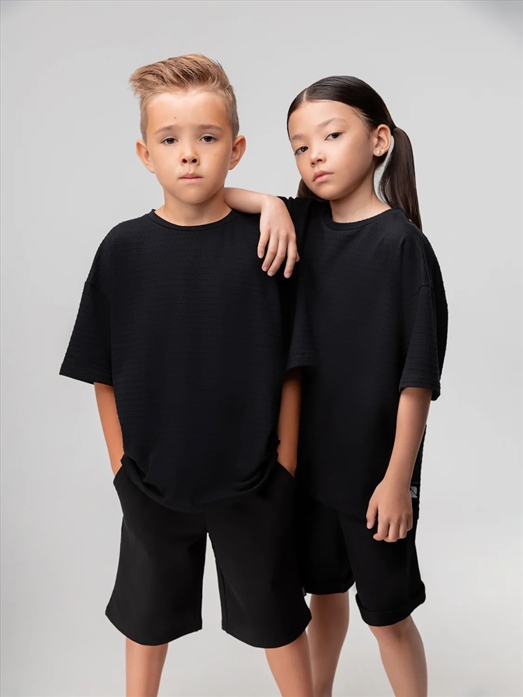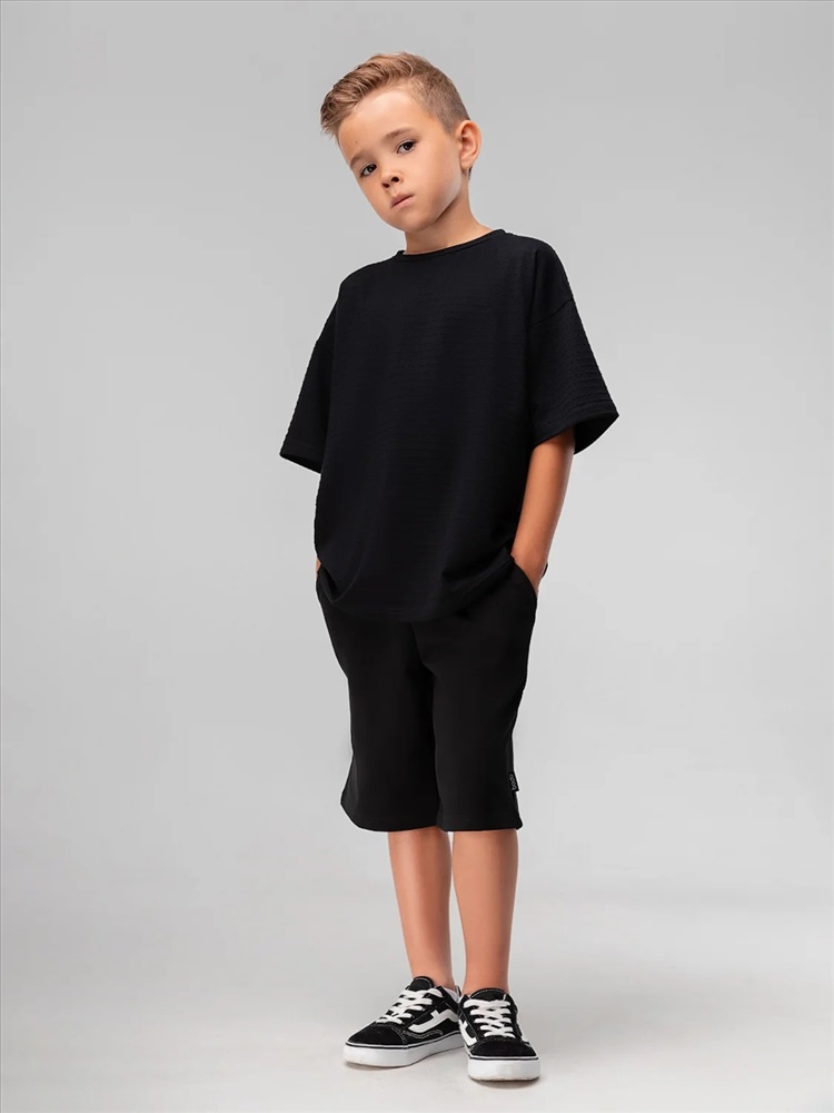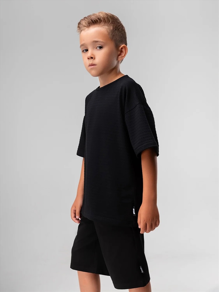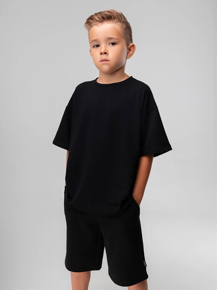 Свободная футболка из кулирной глади с тиснением, короткий рукав.