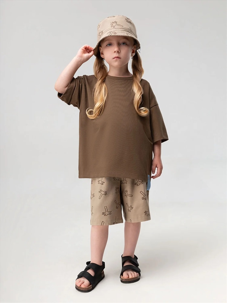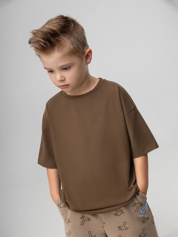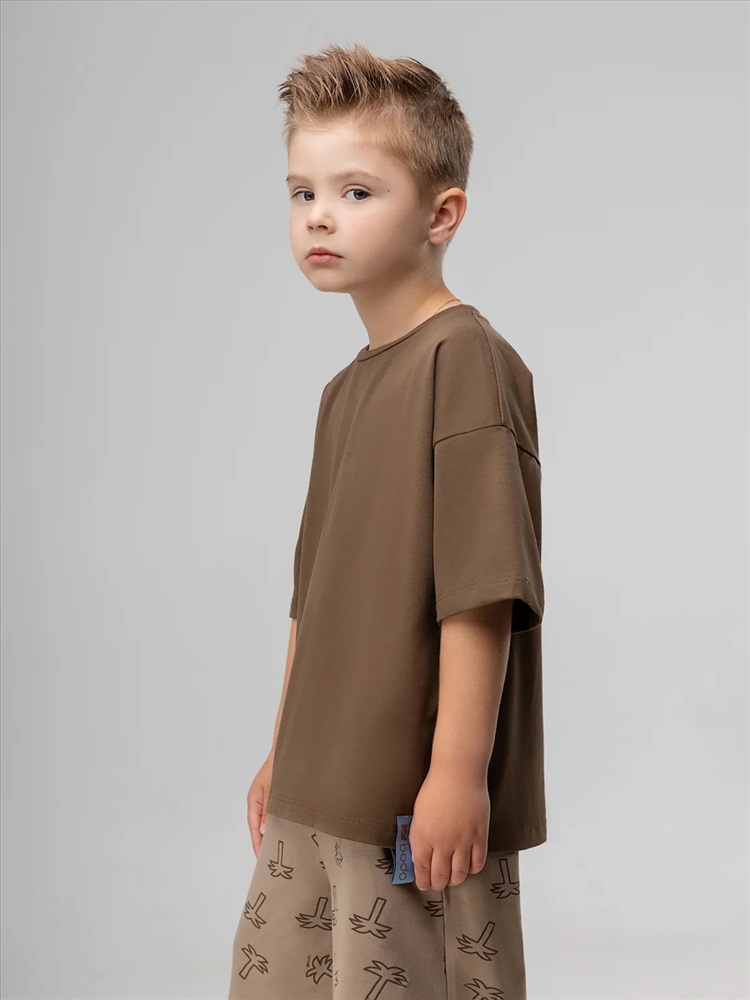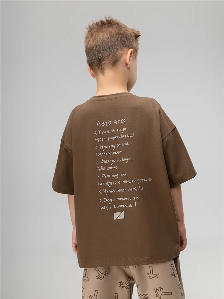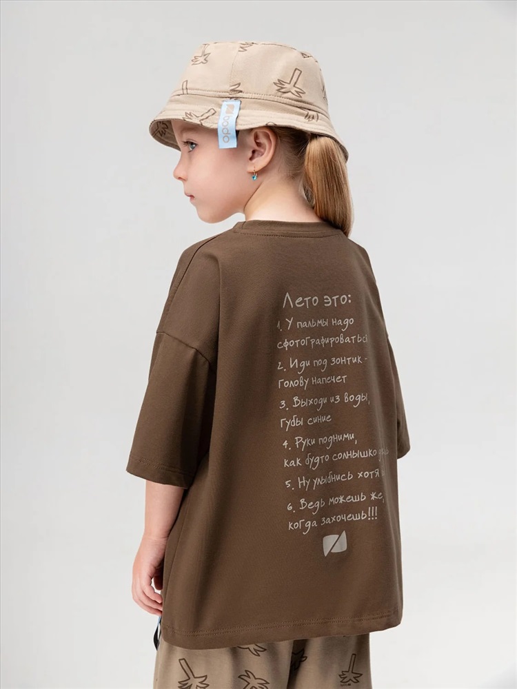 Свободная, прямая футболка с коротким рукавом. Горловина футболки округлой формы. Печать на спинке "лето это: -"