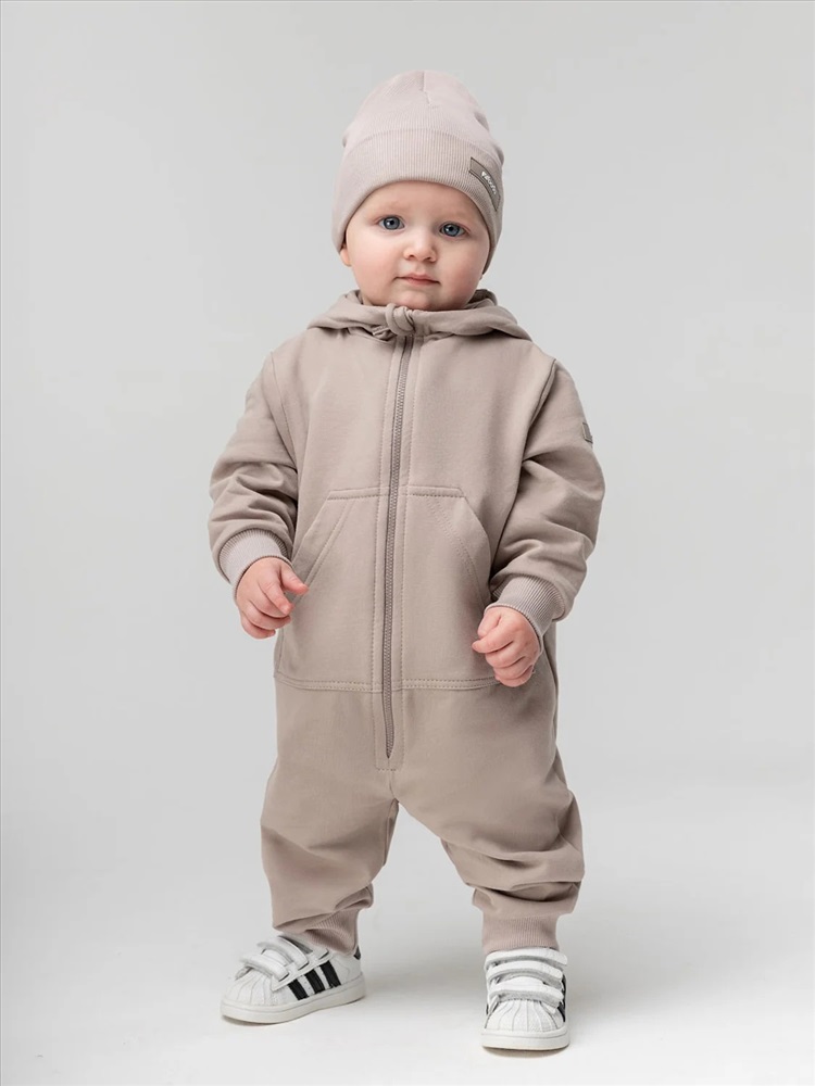 Комбинезон для детей ясельного возраста. Комбинезон без подкладки, прямого силуэта, с застёжкой на молнию, с притачными манжетами по низу изделия. Комбинезон с втачными рукавами с притачной манжетой. Комбинезон с капюшоном, с карманом «кенгуру».