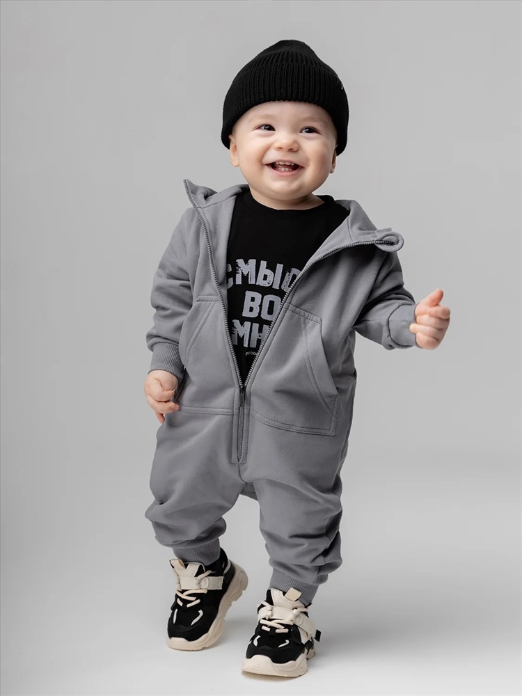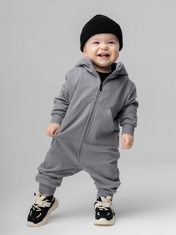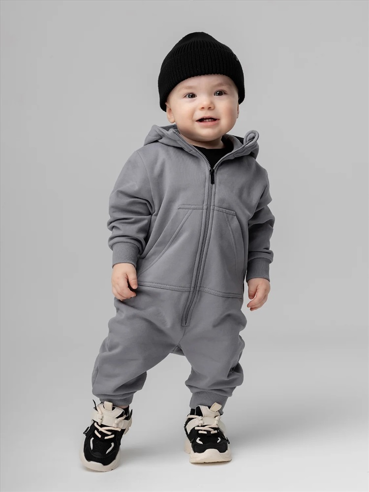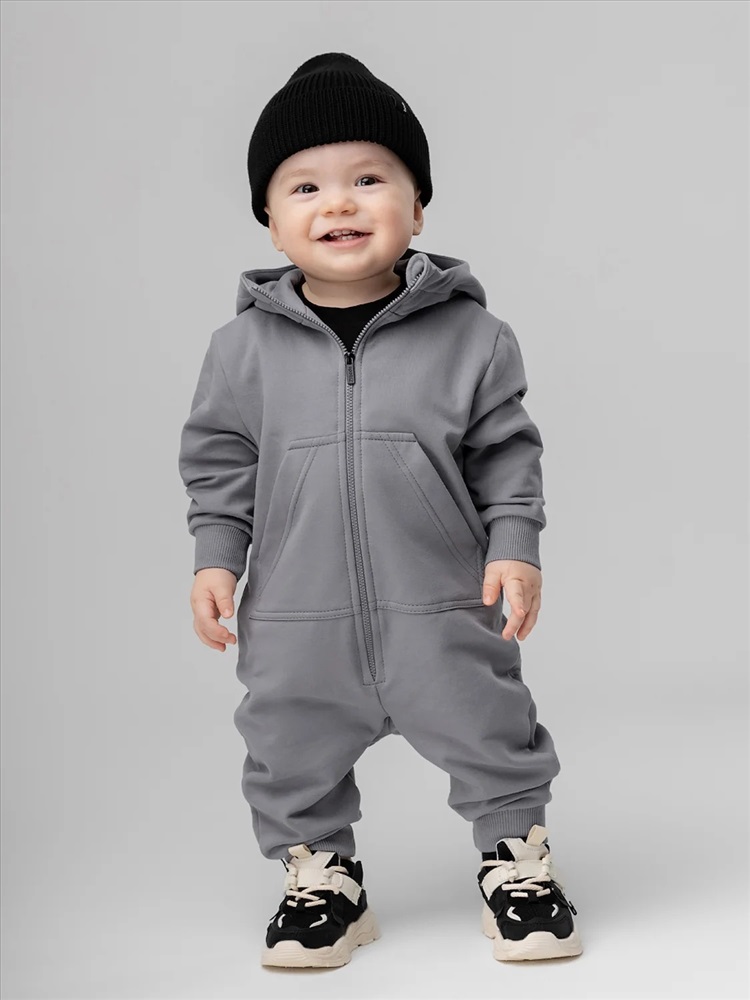 Комбинезон для детей ясельного возраста. Комбинезон без подкладки, прямого силуэта, с застёжкой на молнию, с притачными манжетами по низу изделия. Комбинезон с втачными рукавами с притачной манжетой. Комбинезон с капюшоном, с карманом «кенгуру».