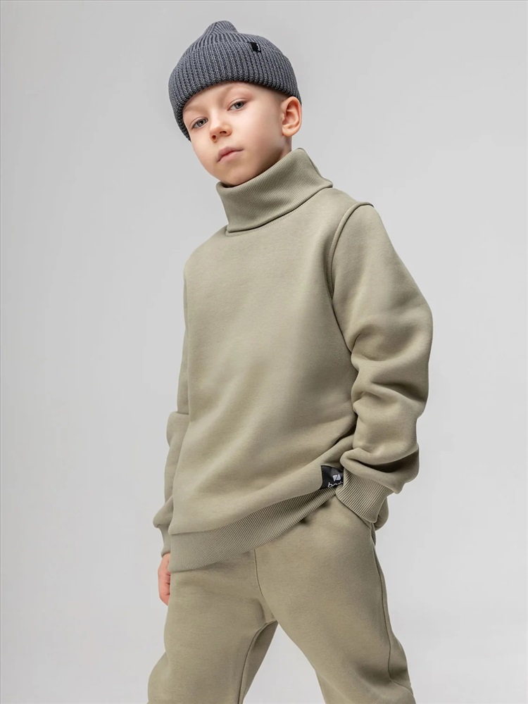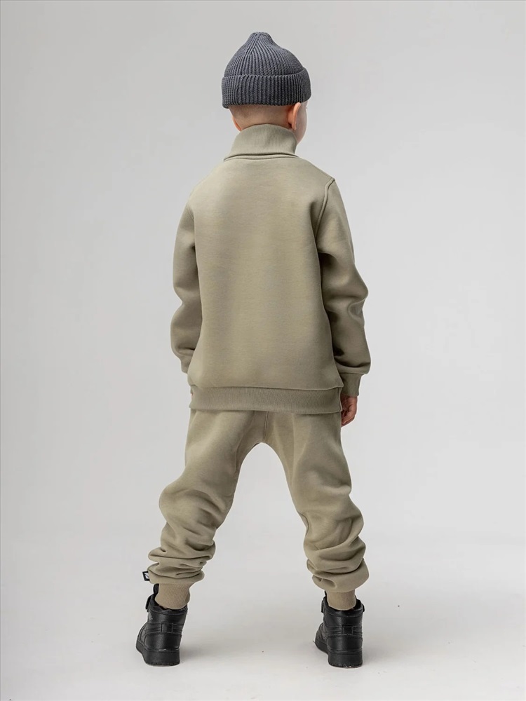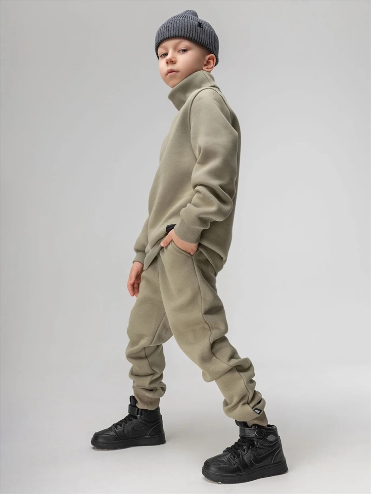 Детский костюм. Толстовка с воротником-стойка, рукава на манжетах, полуприлегающий покрой. Брюки- джоггеры, детали: пояс - эластичная резинка, низ изделия- манжеты. Состав: футер трехнитка с начесом 80% хлопок 20% полиэстер