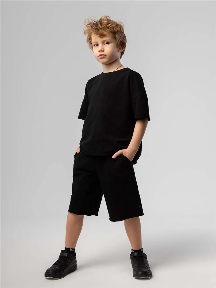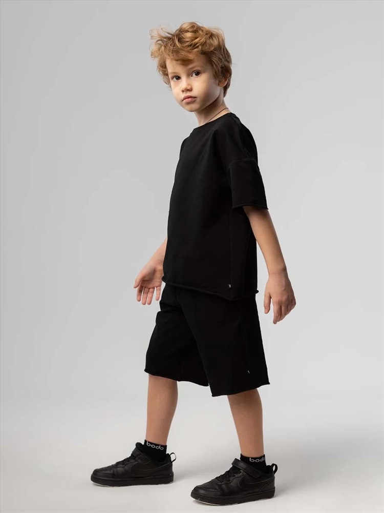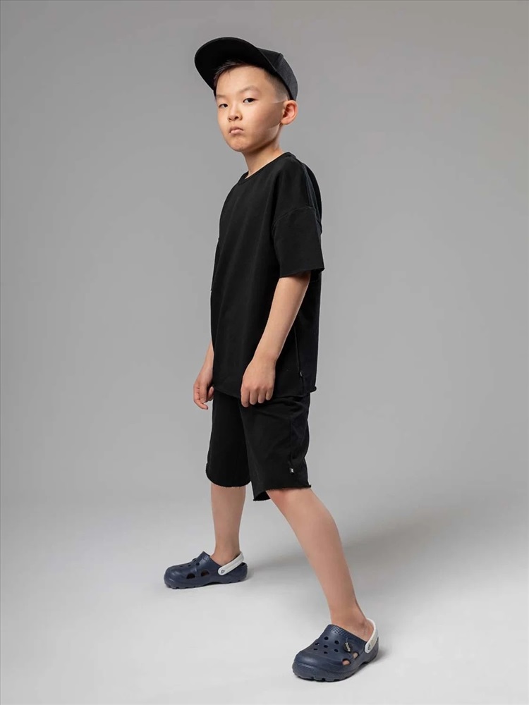 Костюм для детей. Шорты, детали: свободный покрой, пояс - эластичная резинка, карманы с отрезным бочком. Футболка, детали: короткие рукава, свободный покрой, округлый вырез горловины. Состав: футер двухнитка 92% хлопок 8% лайкра.