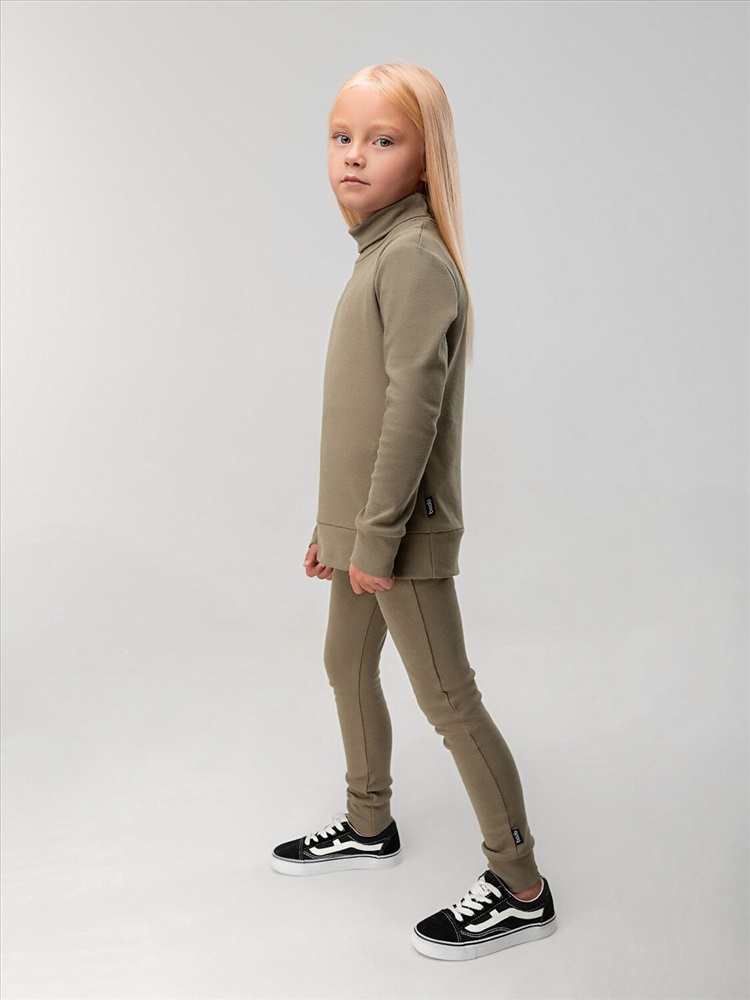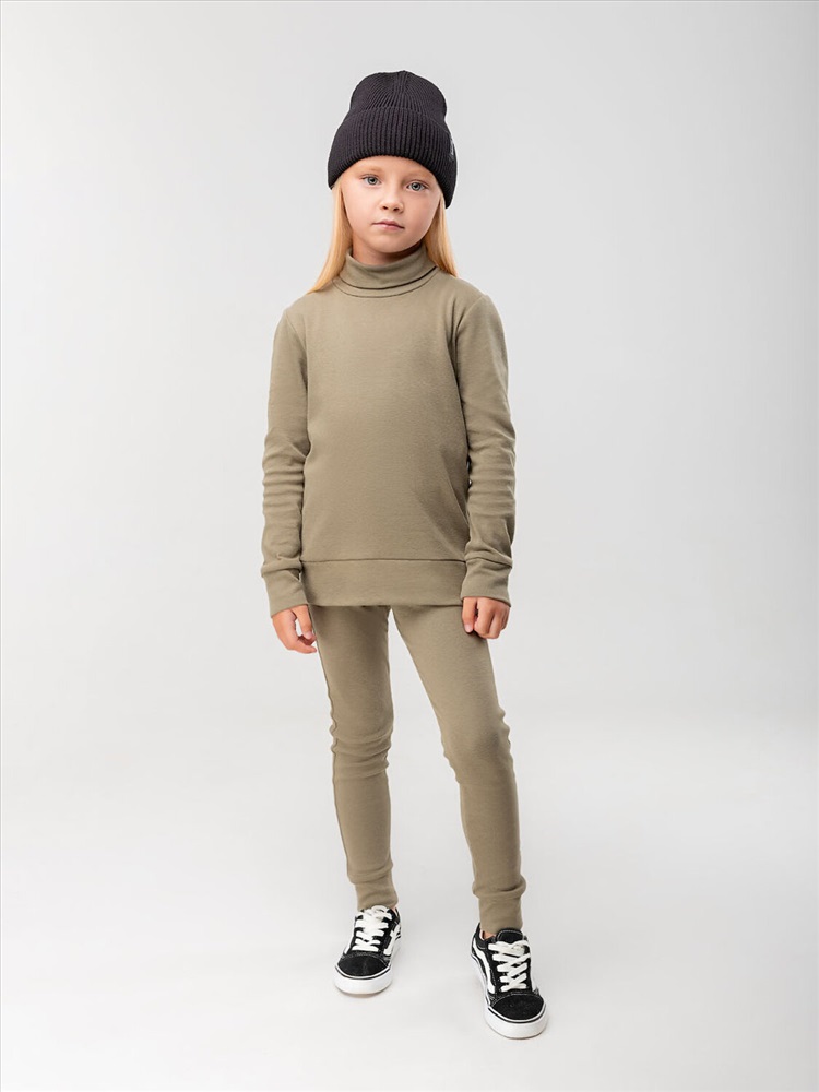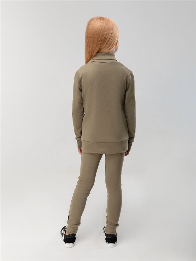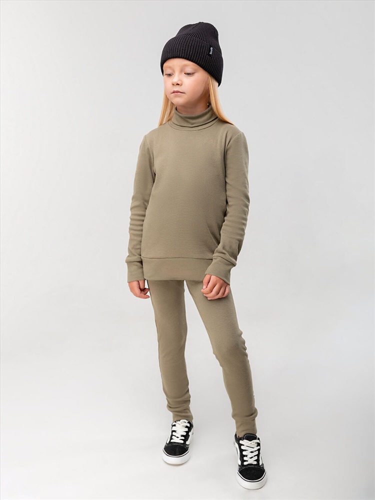 Детский костюм. Водолазка с воротником-стойка, рукава на манжетах, полуприлегающий покрой. Леггинсы. Детали: прилегающий покрой, пояс - эластичная резинка, зауженный низ, без застежек, без карманов. Состав:рибана 92% хлопок 8% лайкра