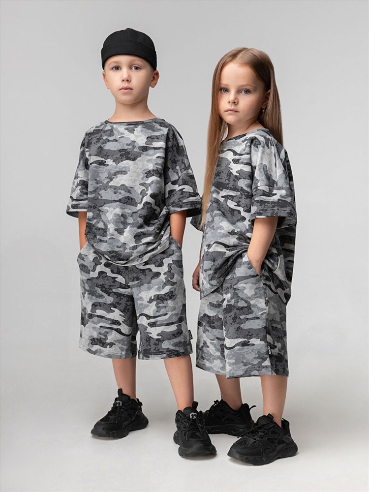 Костюм для детей. Шорты, детали: свободный покрой, пояс - эластичная резинка, карманы с отрезным бочком. Футболка, детали: короткие рукава, свободный покрой, округлый вырез горловины. Состав: футер двухнитка 92% хлопок 8% лайкра