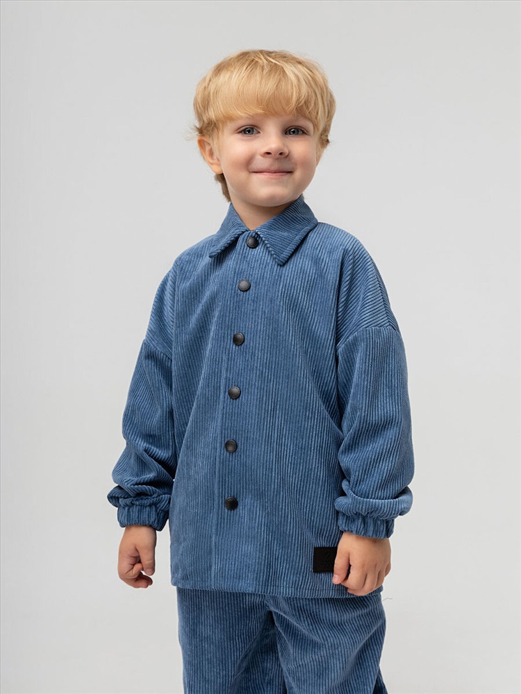 Костюм для детей дошкольного возраста. Рубашка без подкладки, прямого силуэта, с центральной бортовой застёжкой на кнопки, с отложным воротником, с втачными рукавами на резинке. Низ изделия ровный. Брюки свободного силуэта, расширенные в бёдрах и заужены к низу, на притачном поясе с внутренней резинкой, брюки с боковыми карманами. Низ изделия прямой.