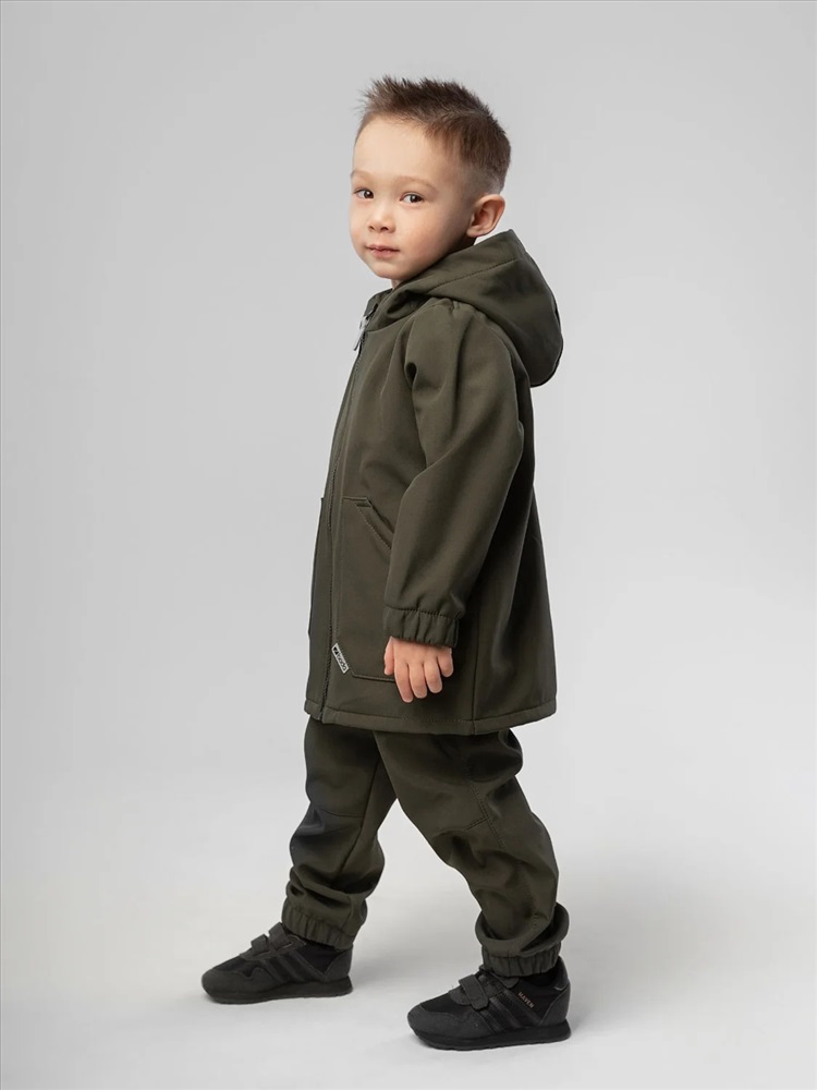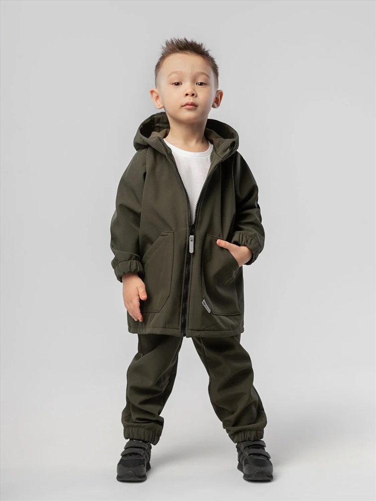 Демисезонный ветронепроницаемый и дышащий костюм из материала softshell. Водо- и ветронепроницаемый материал softshell гарантирует комфорт в такую изменчивую весеннюю и осеннюю погоду. На куртке накладные карманы, на молнии светоотражающий пуллер, защитная планка, несъемный капюшон. Брюки - джоггеры, пояс - эластичная резинка, низ изделия - манжеты. Комфортная температура Softshell от + 5 до +15 С, но всё зависит от индивидуальных особенностей теплообмена тела ребенка. Состав: софтшелл 100% полиэстер