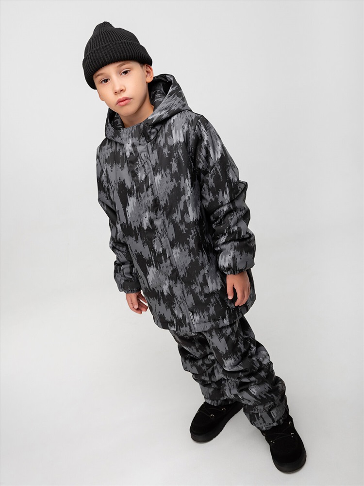 Костюм для детей дошкольного возраста. Куртка с подкладкой, прямого силуэта, с втачными рукавами на манжете. Куртка с центральной застёжкой на тесьму - «молния» закрытая ветрозащитной планкой с потайными кнопками. Куртка с капюшоном. Карманы расположены в боковых швах. Брюки утеплённые для детей дошкольного возраста. Брюки свободные, по низу резинка, на притачном поясе. Низ изделия снабжён дополнительными штрипками. По боковым швам расположены светоотражающий кант. Материал - курточная ткань. Куртка: утеплитель Hetta micro 150 г/м², подкладочный материал флис 100% полиэстер. Брюки: утеплитель Hetta micro 100 г/м², подкладочный материал кулирная гладь 100% хлопок. Температурный режим от -10 до +5 гр., в зависимости от индивидуального теплообмена ребенка и промежуточного слоя одежды.