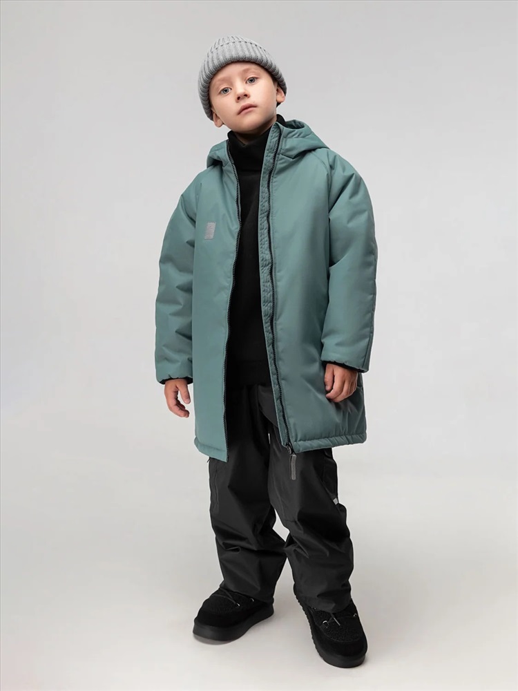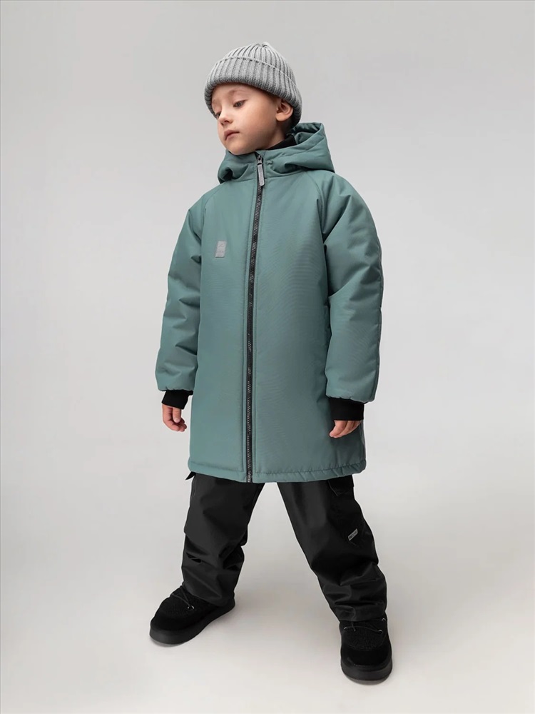 Куртка- пальто для детей дошкольного возраста. Пальто утеплённое на подкладке, прямого силуэта, с центральной застёжкой на тесьму -молния. Пальто с рукавами реглан с притачной манжетой. Капюшон с цельнокроеной стойкой. На полочке расположены карманы листочки. Материал верха: мембранная ткань 5000мм/5000г/м². 100% полиэстер, утеплитель шелтер 100 г/м², подкладочный материал флис 100% полиэстер Температурный режим от 0 до -15, в зависимости от теплообмена ребенка.