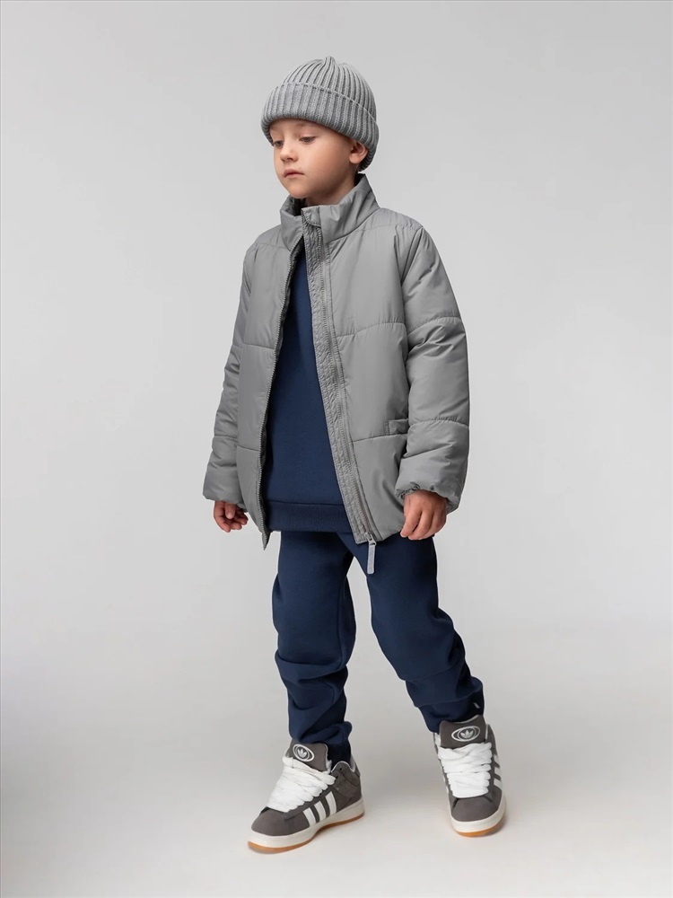Куртка для детей дошкольного возраста. Куртка с подкладкой, прямого силуэта, с втачными рукавами, с воротником стойка. Куртка с центральной застёжкой на тесьму - «молния». На полочках располагаются карманы в швах с настрочной листочкой. Материал верха: курточная ткань 100% полиэстер, утеплитель 150 г/кв.м, подкладочный материал кулирная гладь хлопок 100%. Температурный режим от -5 до +10, в зависимости от индивидуального теплообмена ребенка и промежуточного слоя одежды.