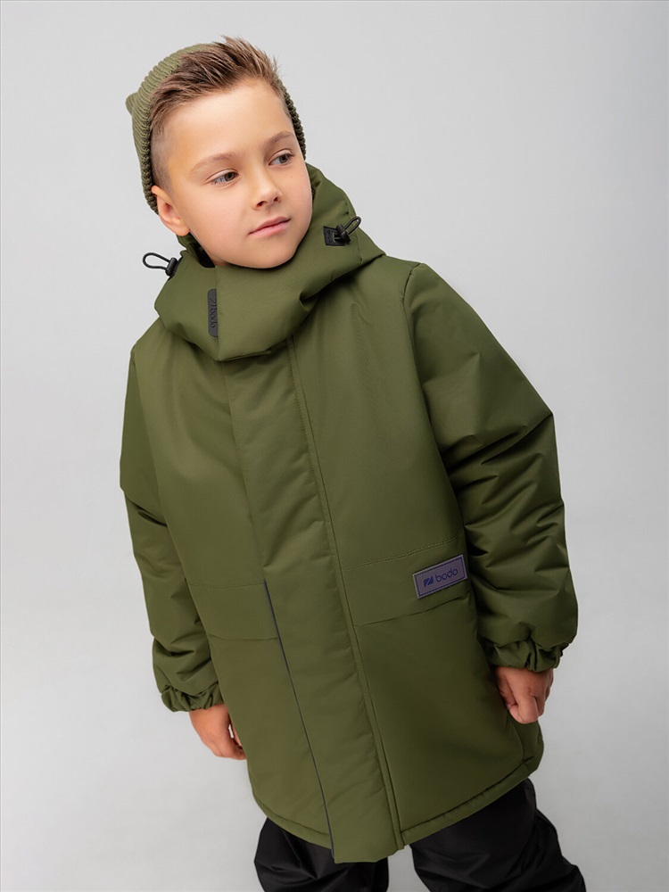 Куртка для детей дошкольного возраста. Куртка с подкладкой, прямого силуэта, с втачными рукавами. Подкладка: флис. По спинке куртки и рукава светоотражающий кант. Куртка с центральной застёжкой на тесьму - «молния», закрытая ветрозащитной планкой. Куртка с капюшоном, с регулировкой по диаметру капюшона. На полочке располагаются два кармана закрытые клапаном. Утеплитель Hetta micro 300 г/м². Температурный режим до -30 гр., в зависимости от индивидуального теплообмена ребенка и промежуточного слоя одежды.