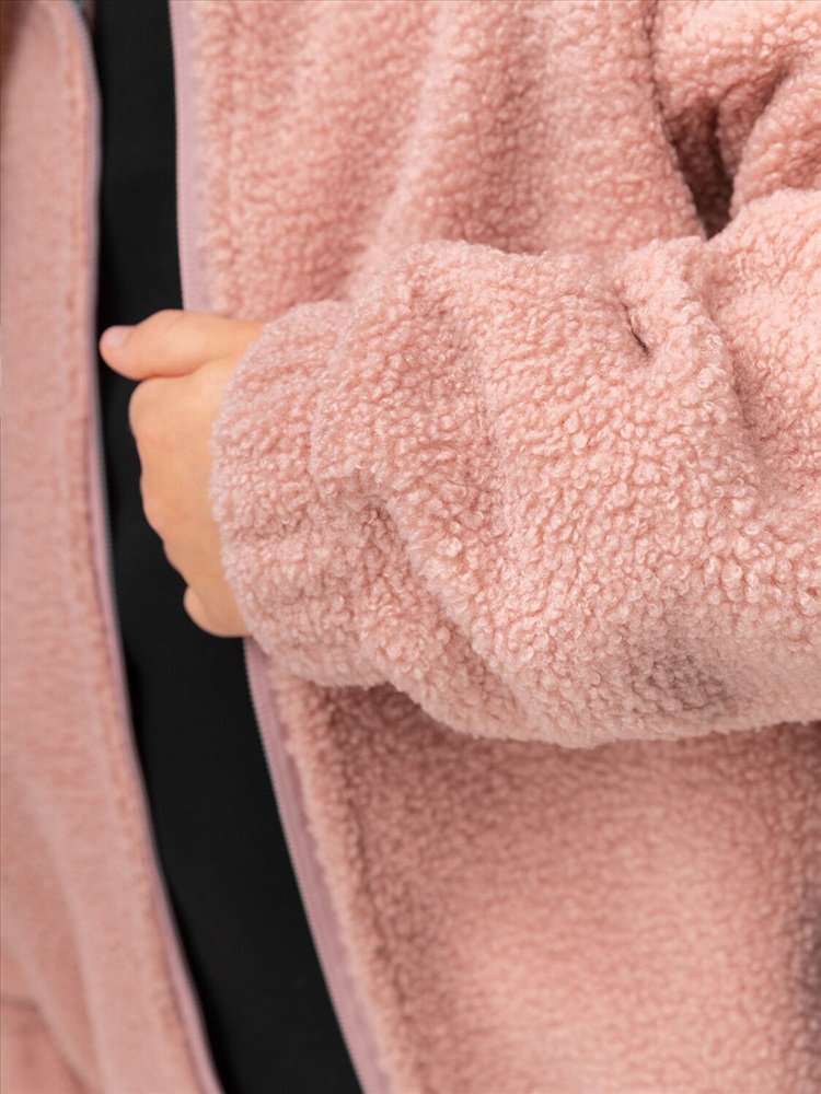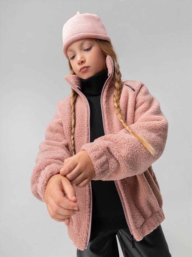 Куртка из ткани флисс тедди(флисовая, мягкая, пушистая ткань, напоминающая мех плюшевого мишки) Куртка без подкладки, с воротником стойка, с центральной застёжкой на молнию. Куртка с рукавами с резинкой по низу. Низ изделия на резинке. Температурный режим: от +10 гр в зависимости от теплообмена ребенка и промежуточного слоя одежды.