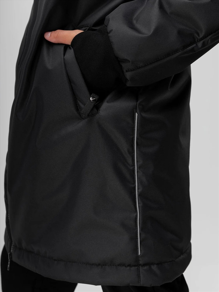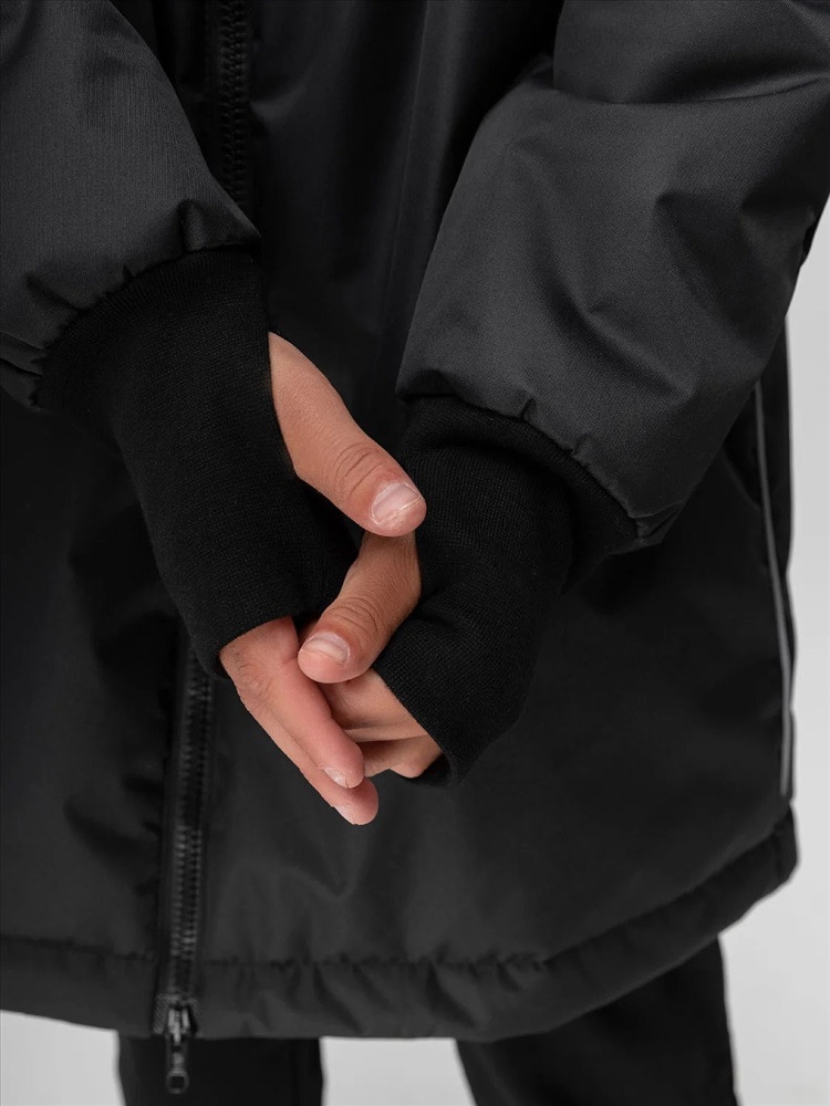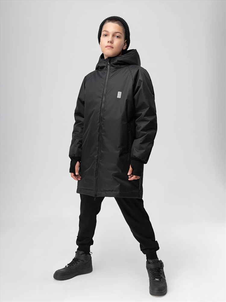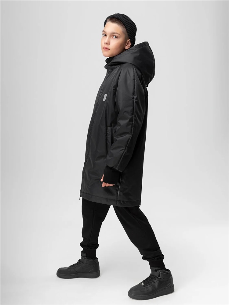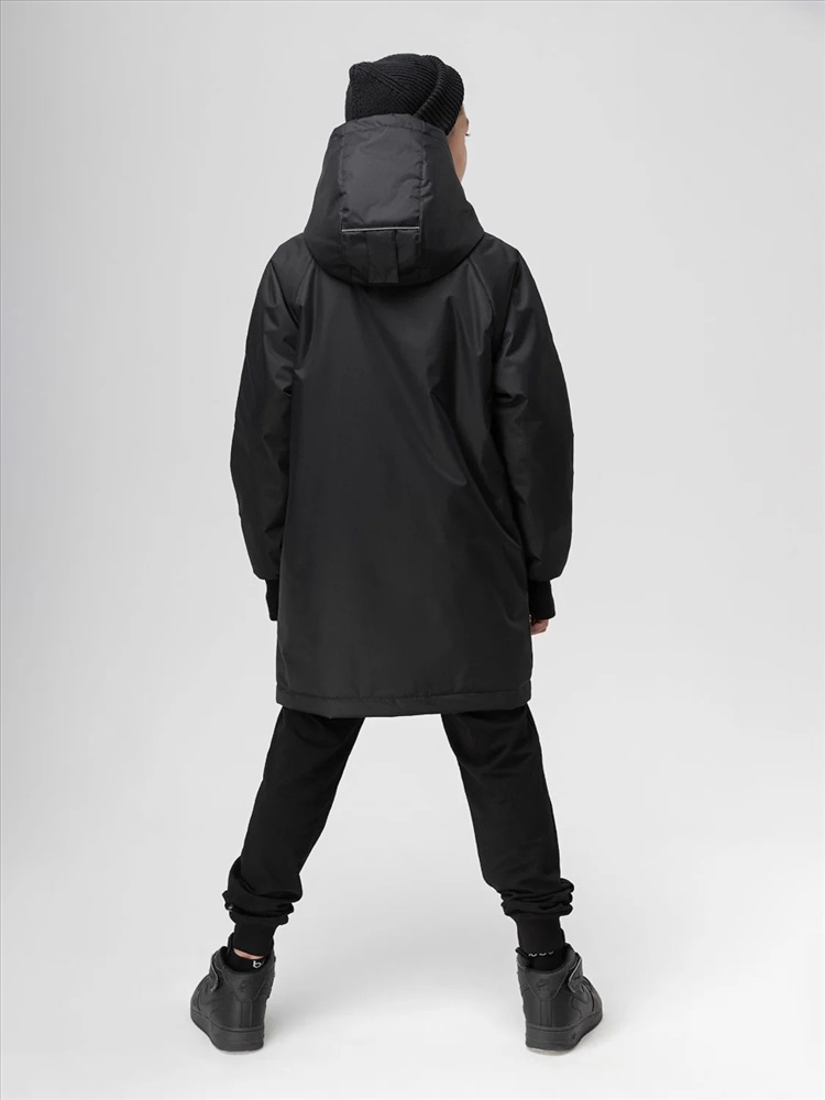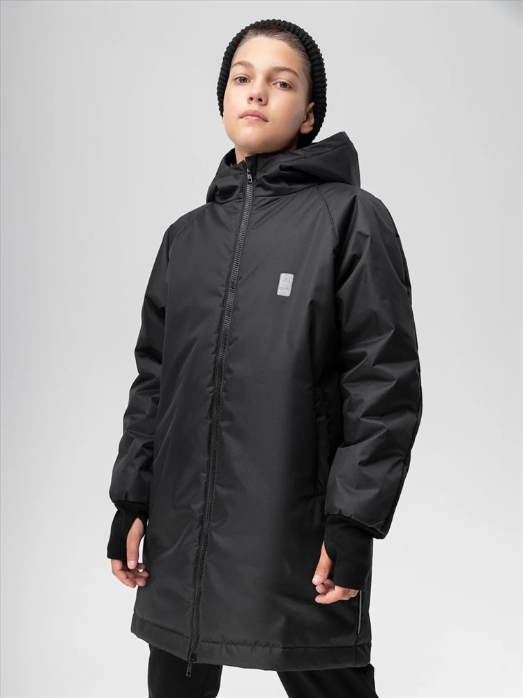 Пальто для детей школьного возраста. Пальто утеплённое на подкладке, прямого силуэта, с центральной застёжкой на тесьму -молния. Пальто с рукавами реглан с притачной удлинённой манжетой с отверстием под палец. Капюшон со вставкой и с цельнокроеной стойкой. На полочке расположены карманы листочки с молнией. Материал верха: мембранная ткань 100% полиэстер, утеплитель Hetta micro 150 г/кв.м, утеплитель в капюшоне Hetta micro 100 г/кв.м, подкладочный материал флис 100% полиэстер. Мембрана 3000 мм/3000 г/кв.м, флис 130 гр. Температурный режим от 0 до -10 градусов, в зависимости от индивидуального теплообмена.