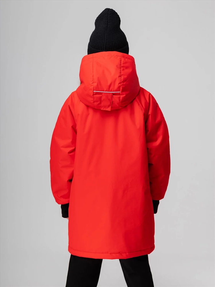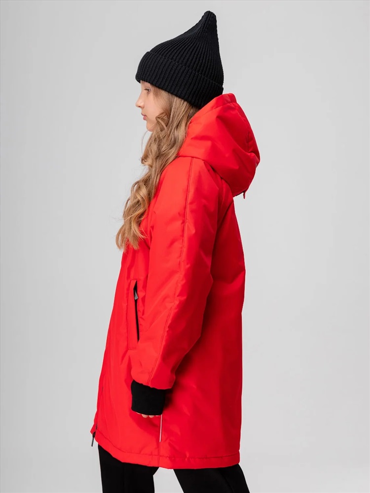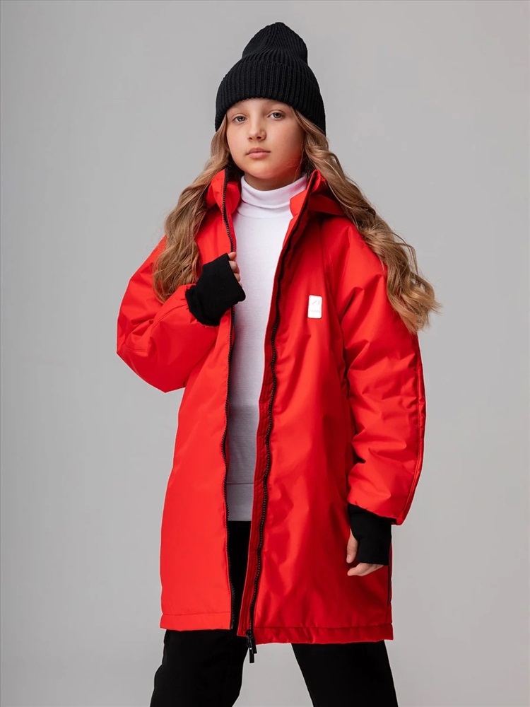 Пальто для детей школьного возраста. Пальто утеплённое на подкладке, прямого силуэта, с центральной застёжкой на тесьму -молния. Пальто с рукавами реглан с притачной удлинённой манжетой с отверстием под палец. Капюшон со вставкой и с цельнокроеной стойкой. На полочке расположены карманы листочки с молнией. Материал верха: мембранная ткань 100% полиэстер, утеплитель Hetta micro 150 г/кв.м, утеплитель в капюшоне Hetta micro 100 г/кв.м, подкладочный материал флис 100% полиэстер. Мембрана 3000 мм/3000 г/кв.м, флис 130 гр. Температурный режим от 0 до -10 градусов, в зависимости от индивидуального теплообмена.