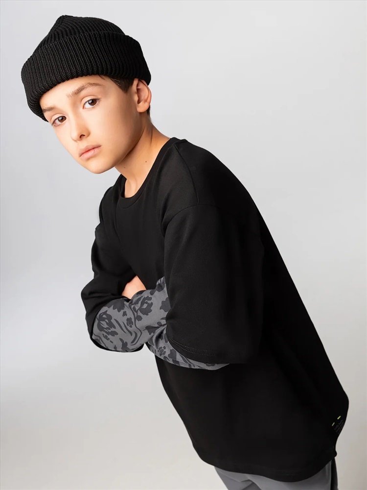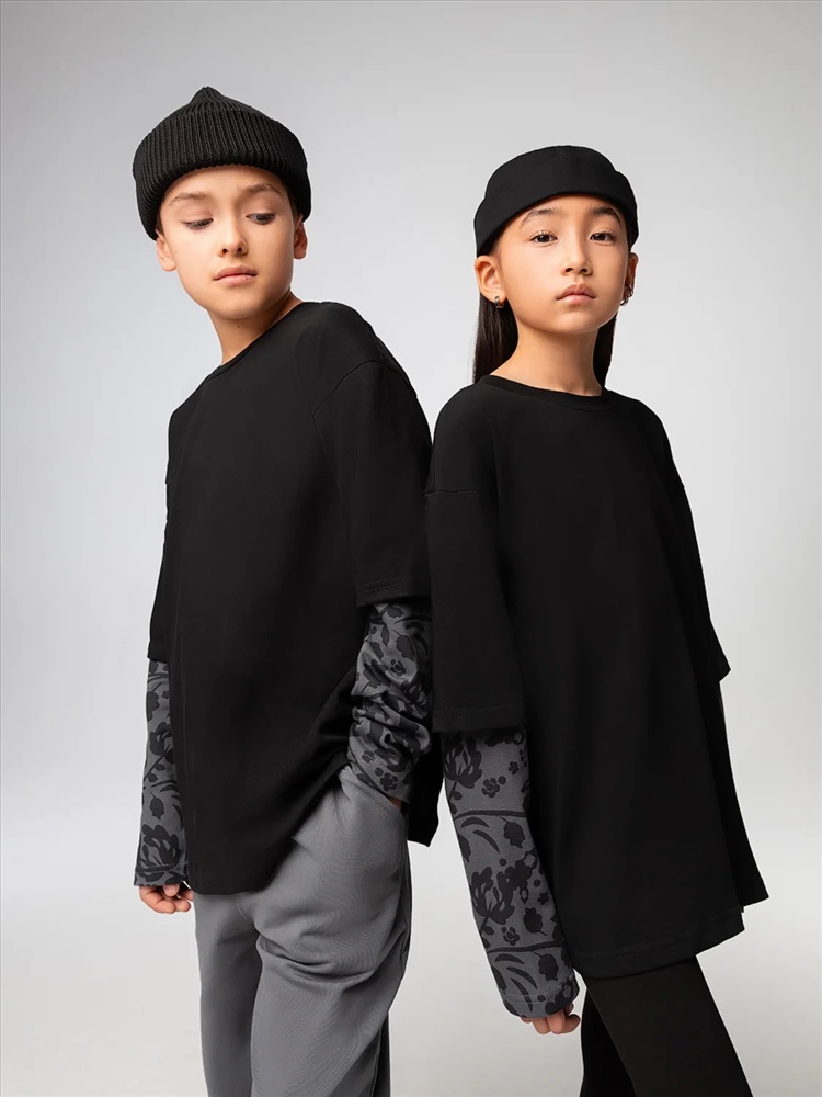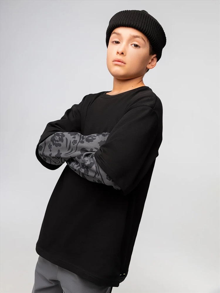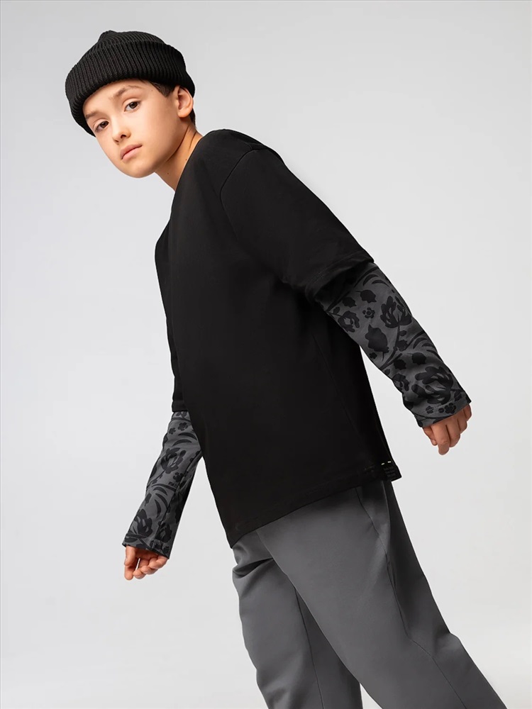 Лонгслив без подкладки с двойными рукавами, прямой силуэт.