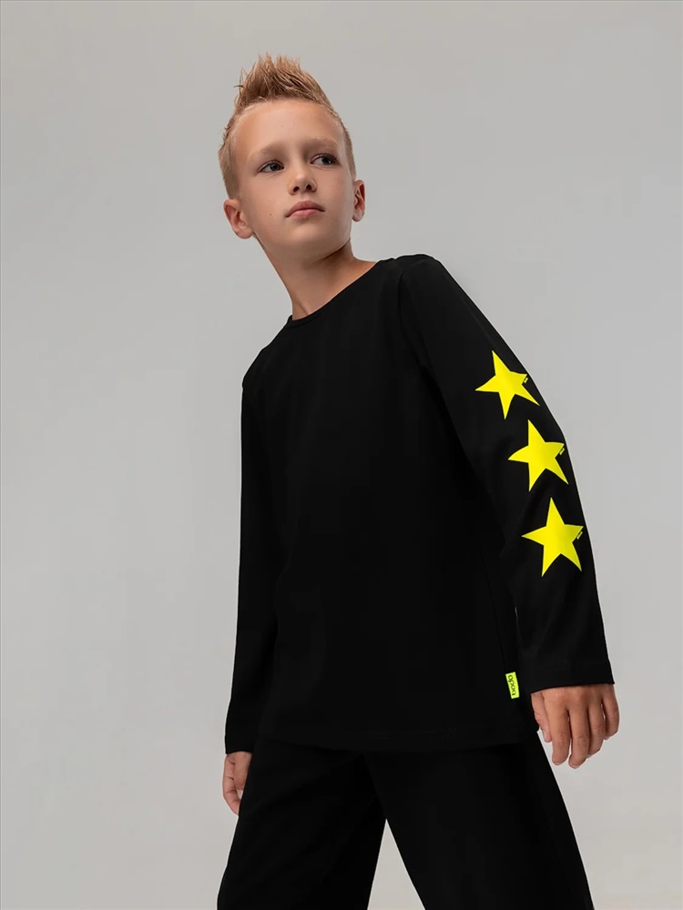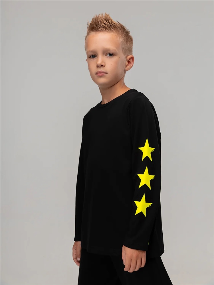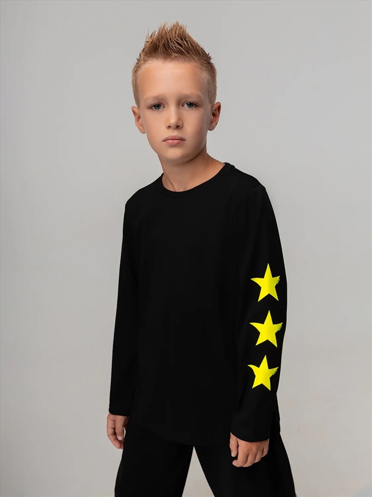 Производитель: Bodo; Российский размер: 98, 104; Возраст: 2,5-3; Обхват груди: 54-56; Обхват талии: 51-53; Обхват бедер: 55-57; Артикул поставщика: 7-303MU; Ткань: кулирная гладь; Состав: 92% хлопок 8% лайкра; Сезон: Осень, Зима; Год: 2025; Страна: Россия Лонгслив свободного силуэта с длинным рукавом. Принт на левом рукаве "звёзды"