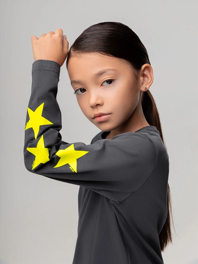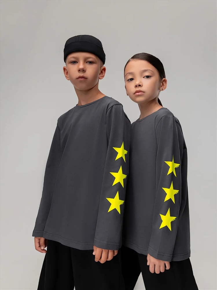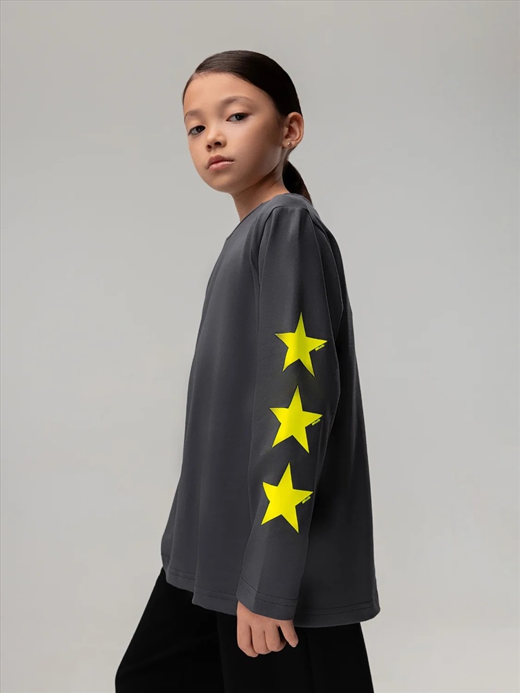 Лонгслив свободного силуэта с длинным рукавом. Принт на левом рукаве "звёзды"