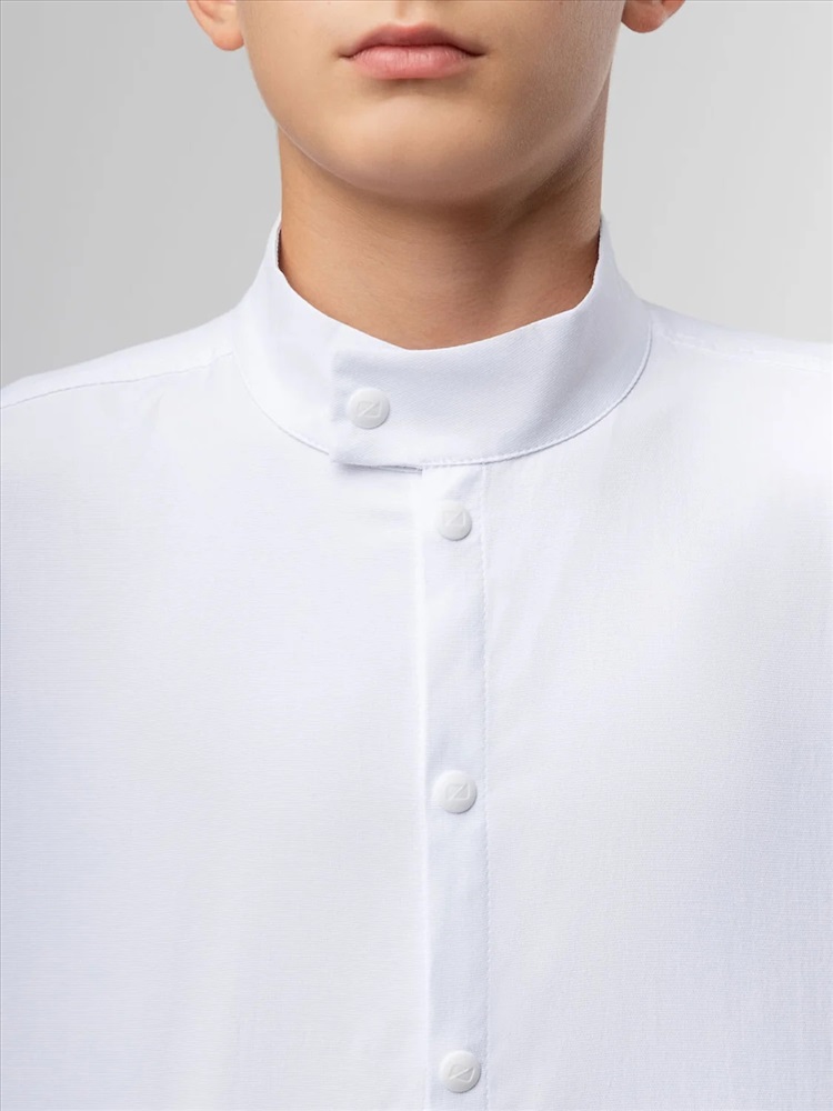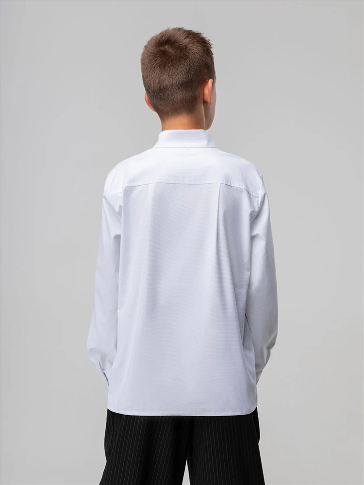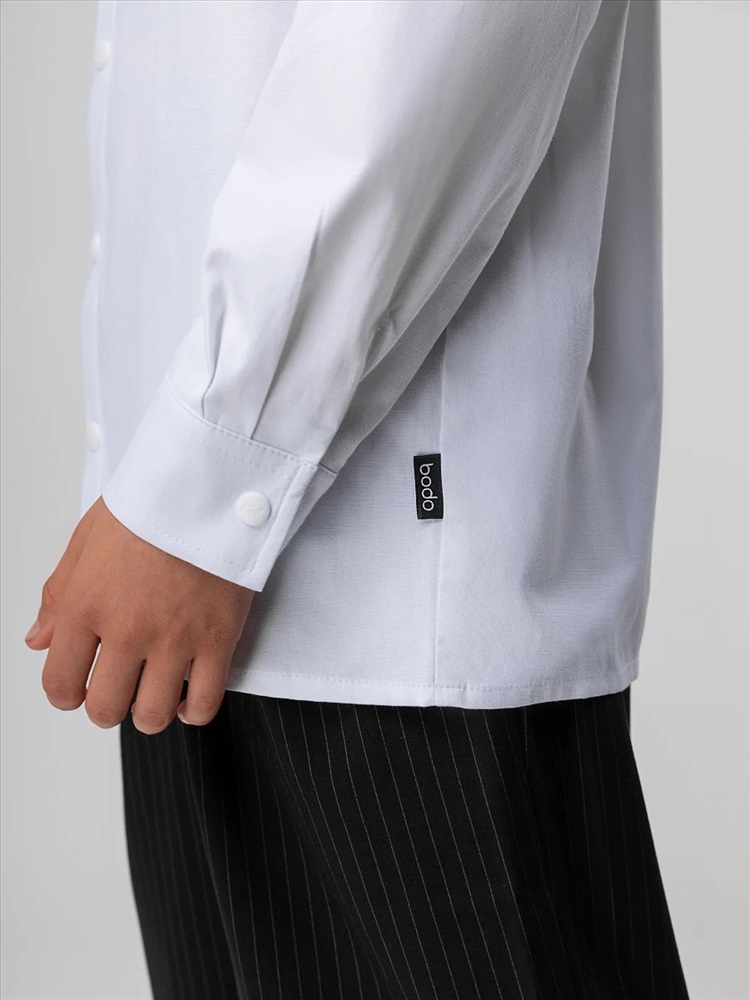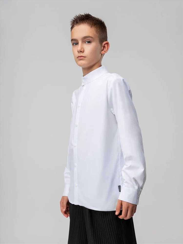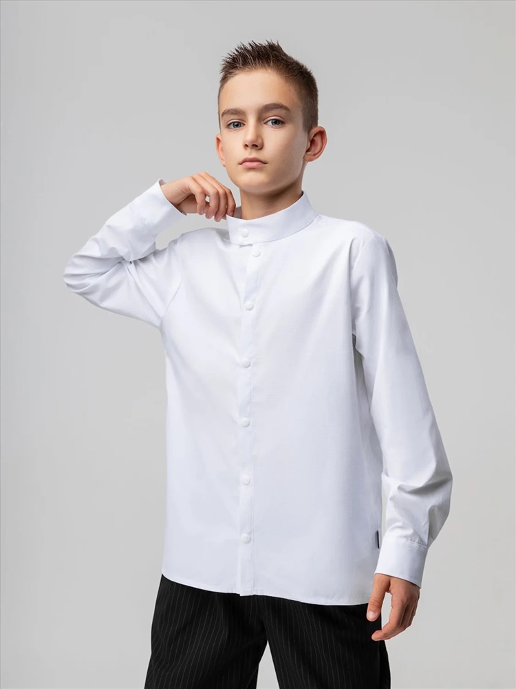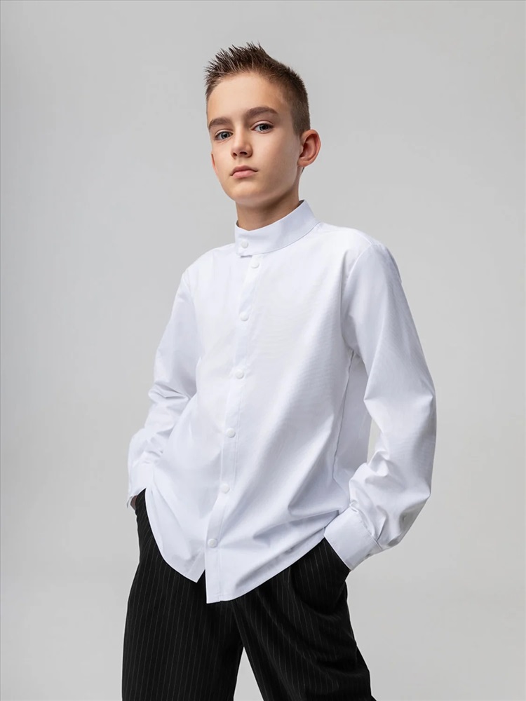 Производитель: Bodo; Российский размер: 122, 128; Возраст: 7-8; Обхват груди: 61-65; Обхват талии: 57-59; Обхват бедер: 66-70; Артикул поставщика: 38-36МU; Ткань: рубашечная ткань; Состав: 55% хлопок 45% полиэстер; Год: 2024; Страна: Россия Рубашка для детей школьного возраста. Рубашка без подкладки, прямого силуэта, с центральной бортовой застёжкой на кнопки, с воротником-стойка, с втачными рукавами с притачной манжетой на кнопке. Низ изделия прямой. По низу рукава — защип.