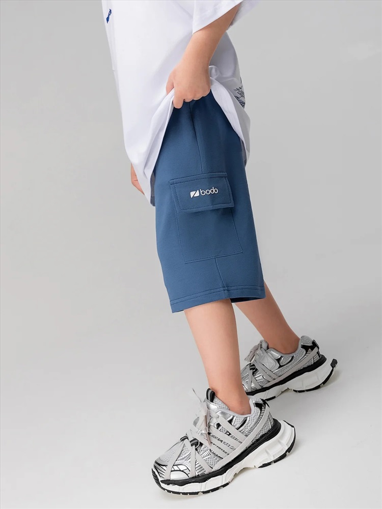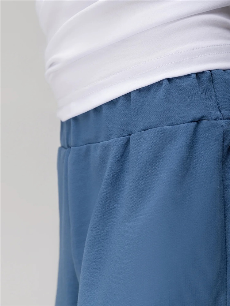 Шорты свободные на поясе с внутренней резинкой, с накладными карманами на боковых швах.