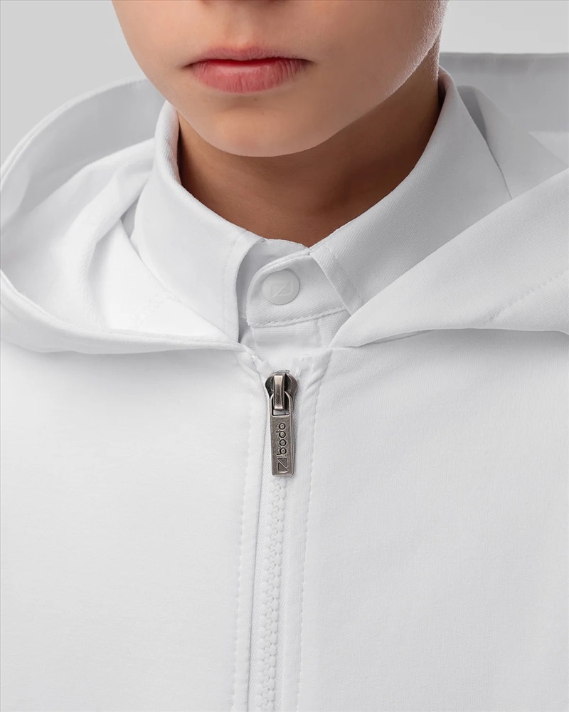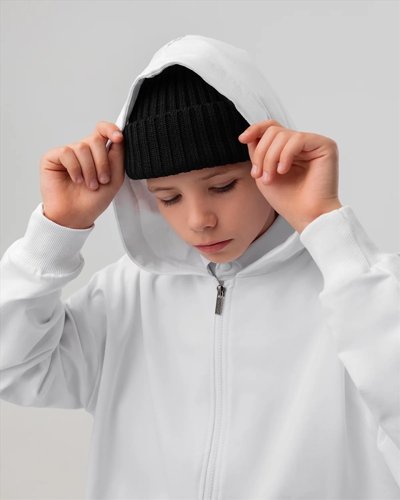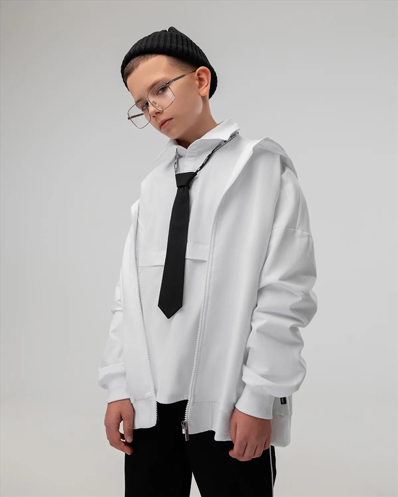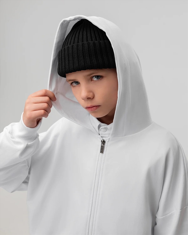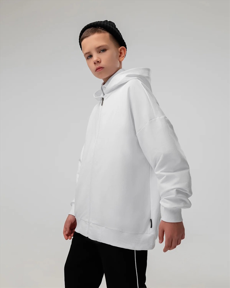 Толстовка с капюшоном на молнии, со спущенным плечом, без карманов.