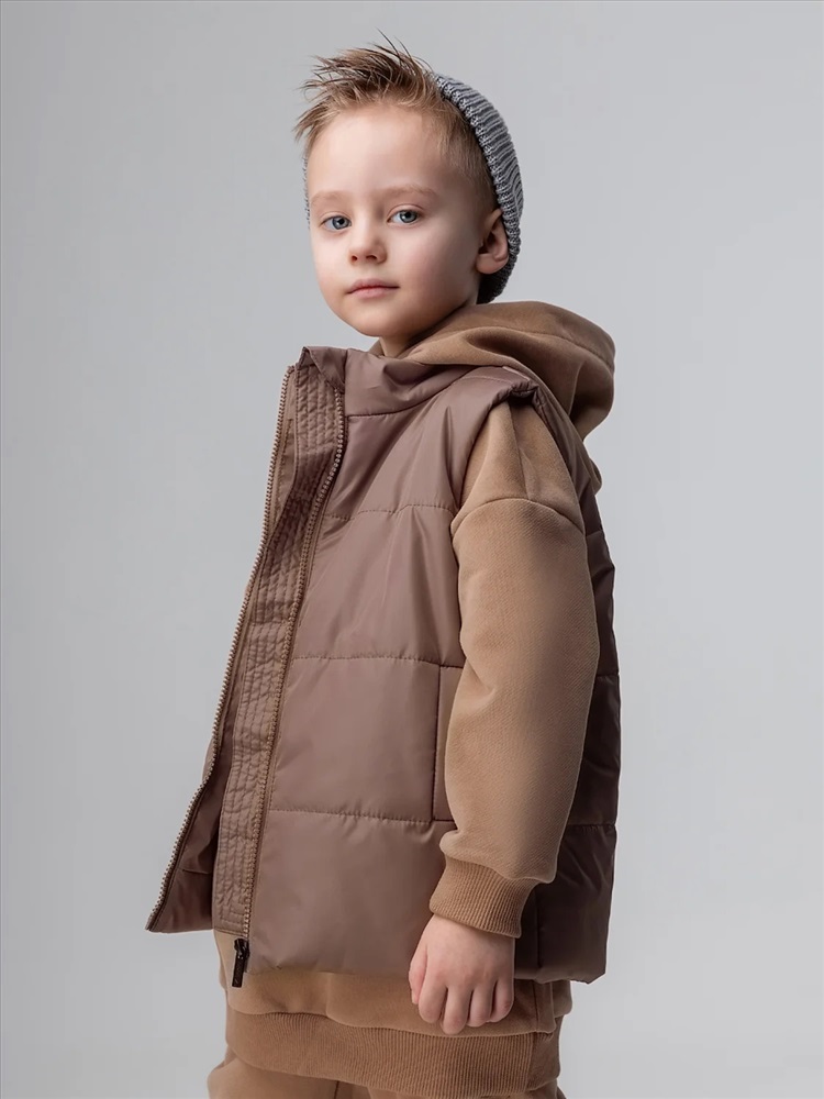 Производитель: Bodo; Артикул поставщика: 14-55МU; Ткань: Дюспо; Состав: 100% полиэстер; Год: 2024; Страна: Россия; Подкладочный материал: кулирная гладь 100% хлопок; Российский размер: 98, 104; Возраст: 2,5-3; Обхват груди: 54-56; Обхват талии: 51-53; Обхват бедер: 55-57 Стильный жилет на молнии, по бокам прорезные карманы, без капюшона. Материал верха: Дюспо 100% полиэстер, утеплитель Hetta micro 150 г/кв.м, подкладочный материал кулирная гладь 100% хлопок