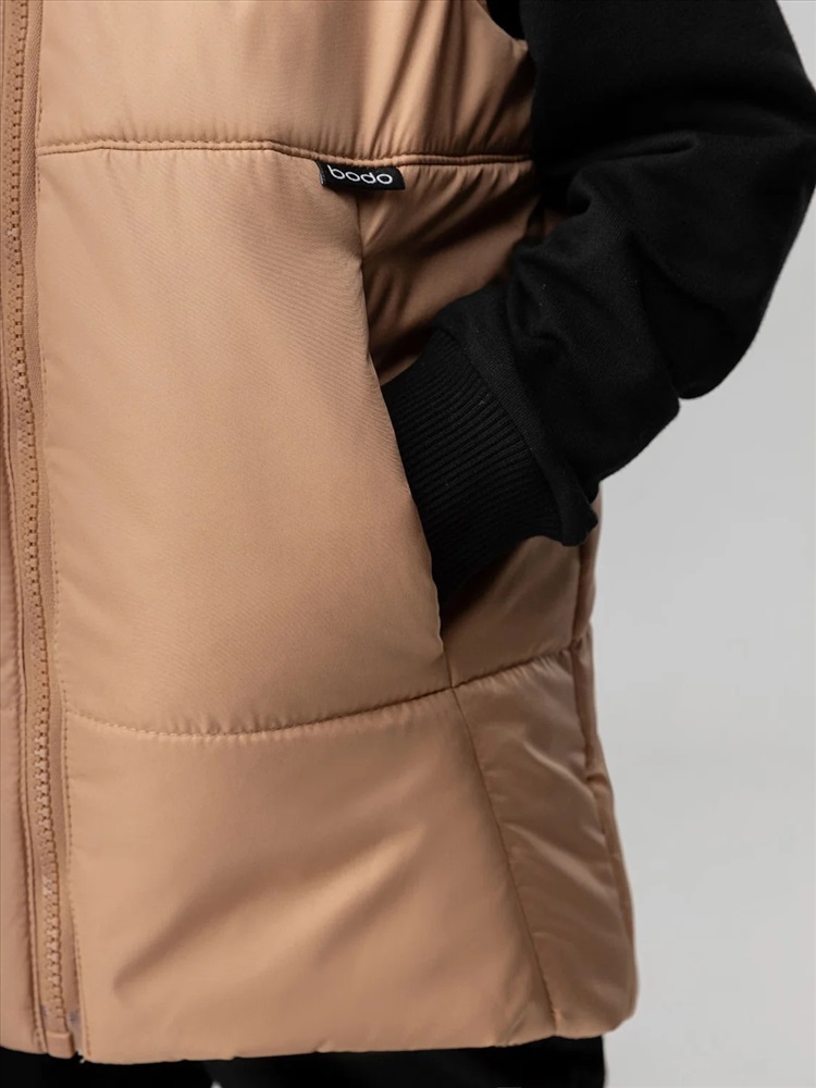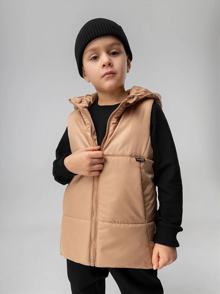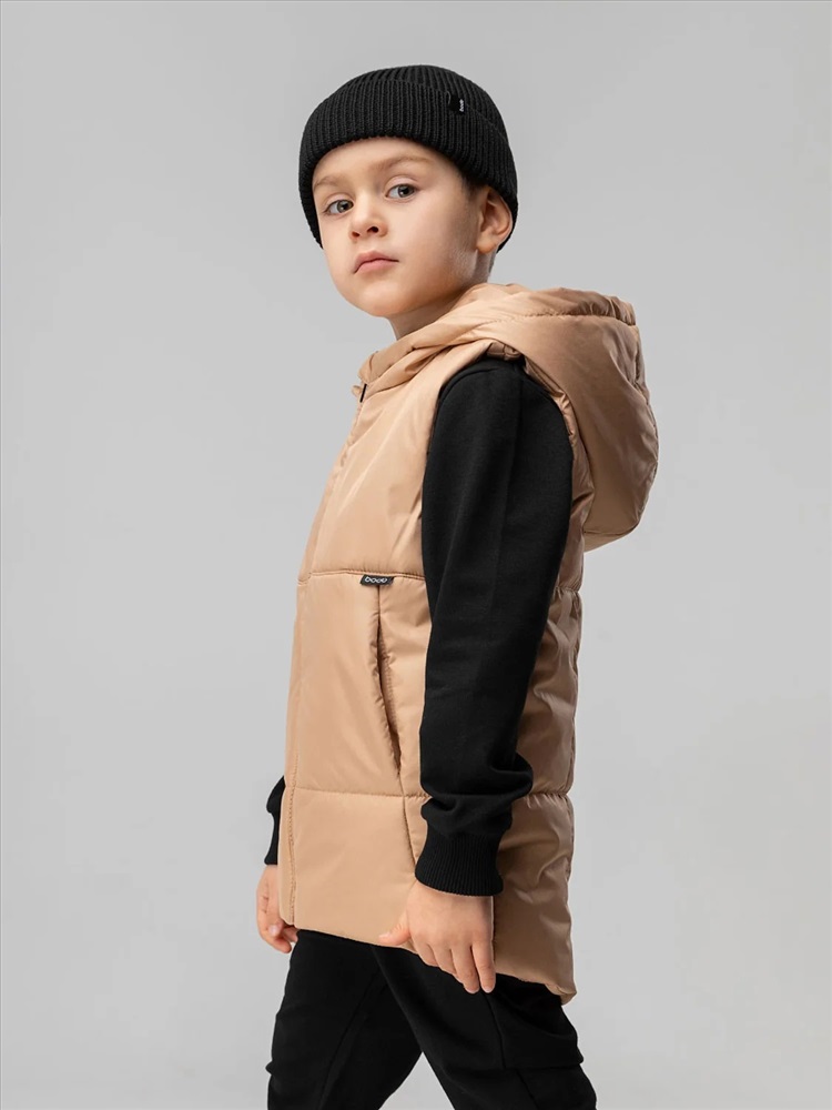 Производитель: Bodo; Артикул поставщика: 14-68МU; Ткань: Дюспо; Состав: 100% полиэстер; Год: 2024; Страна: Россия; Российский размер: 98, 104; Возраст: 2,5-3; Обхват груди: 54-56; Обхват талии: 51-53; Обхват бедер: 55-57 Стильный жилет на молнии, по бокам прорезные карманы, несъемный капюшон.Материал жилета Дюспо воздухообменный и ветрозащитный. Материал верха: Дюспо 100% полиэстер, утеплитель Hetta Filt S2 150 г/кв.м, подкладочный материал кулирная гладь 100% хлопок