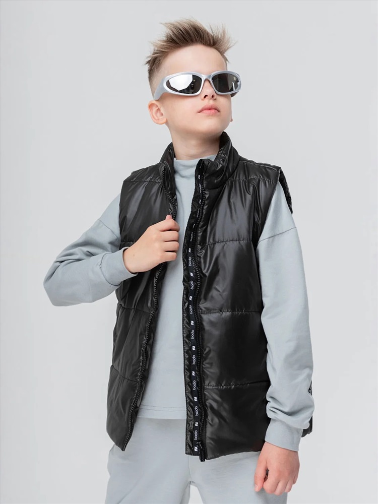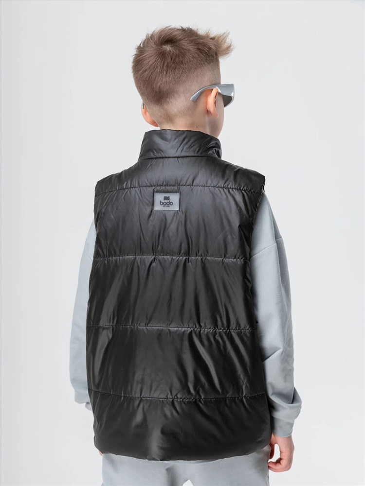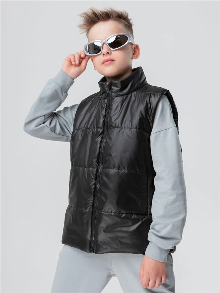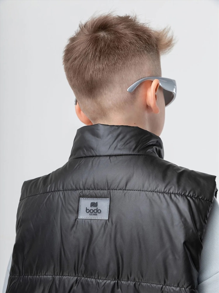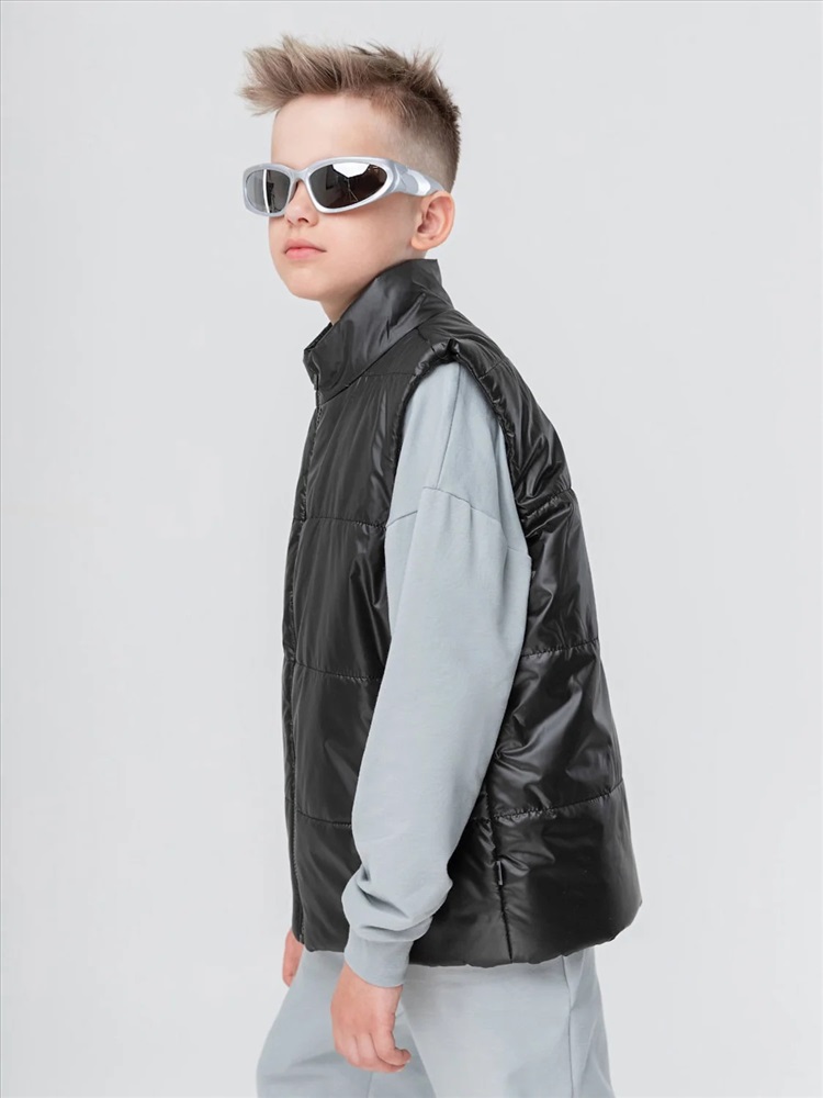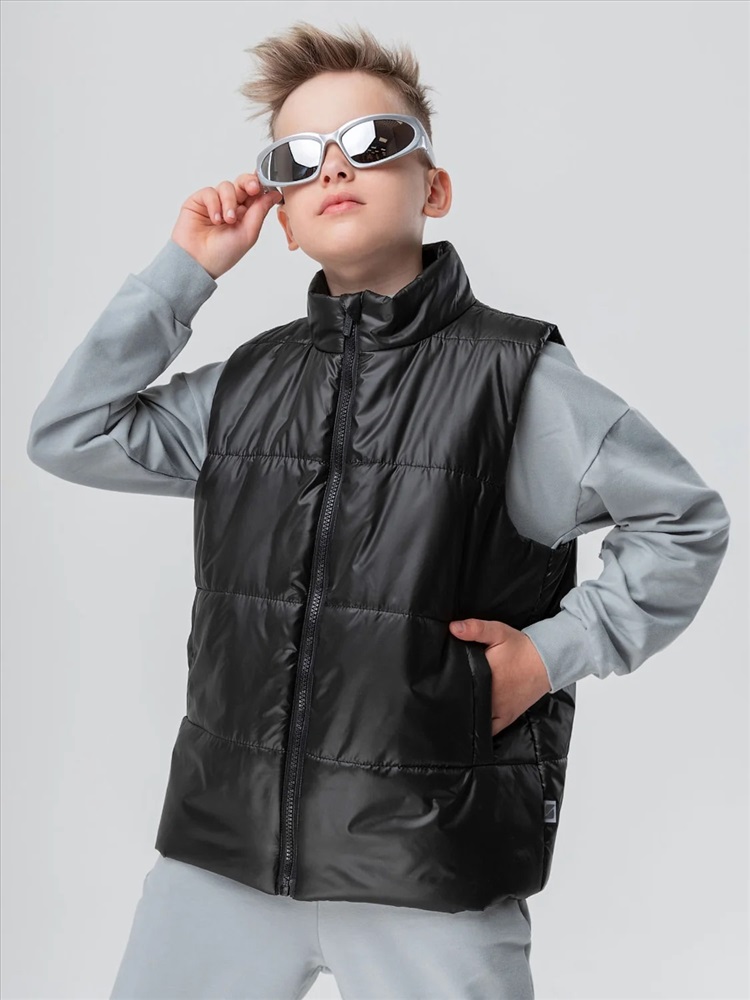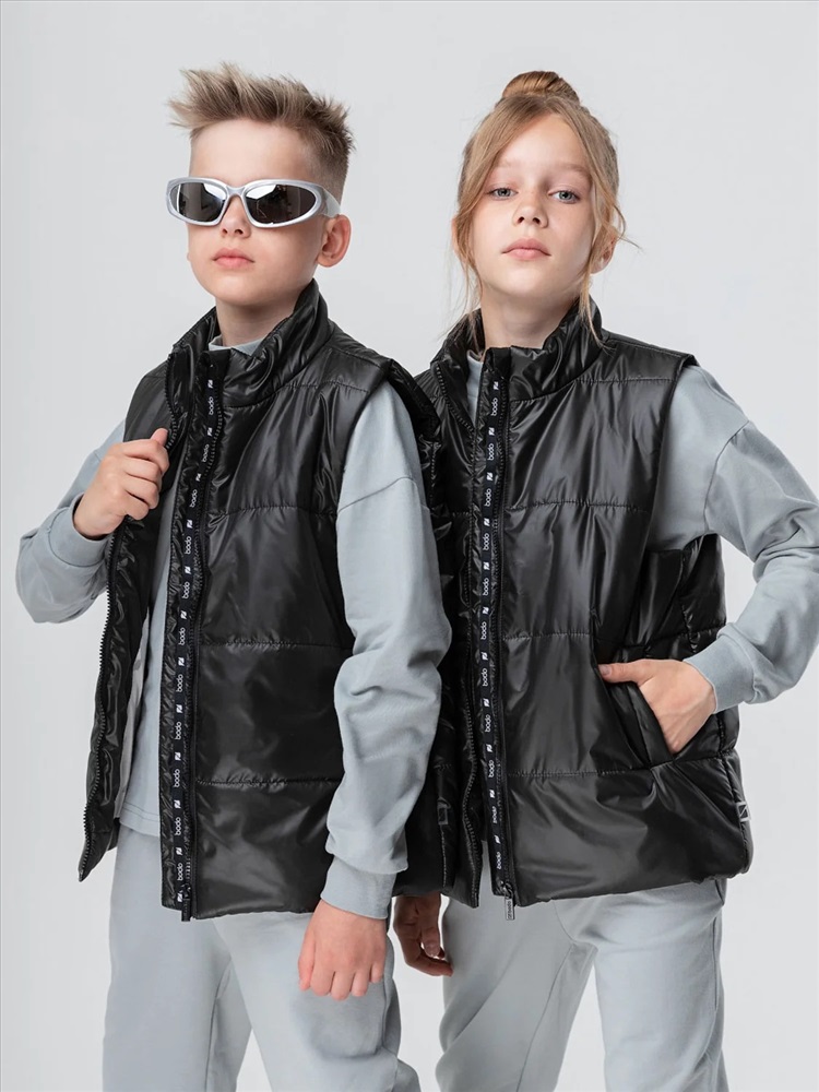 Стильный жилет для детей школьного возраста. Материал FITSYSTEM имеет специальное водонепроницаемое и водоотталкивающее покрытие и пропитку, защищает от дождя, влаги и ветра. Материал верха: Fitsystem Style 100% полиэстер, утеплитель Hetta micro premium S4-K 150 г/кв.м, подкладочный материал кулирная гладь 100% хлопок