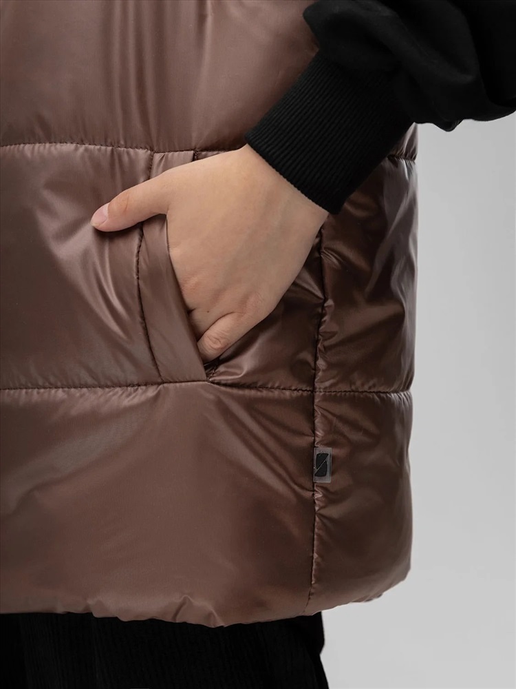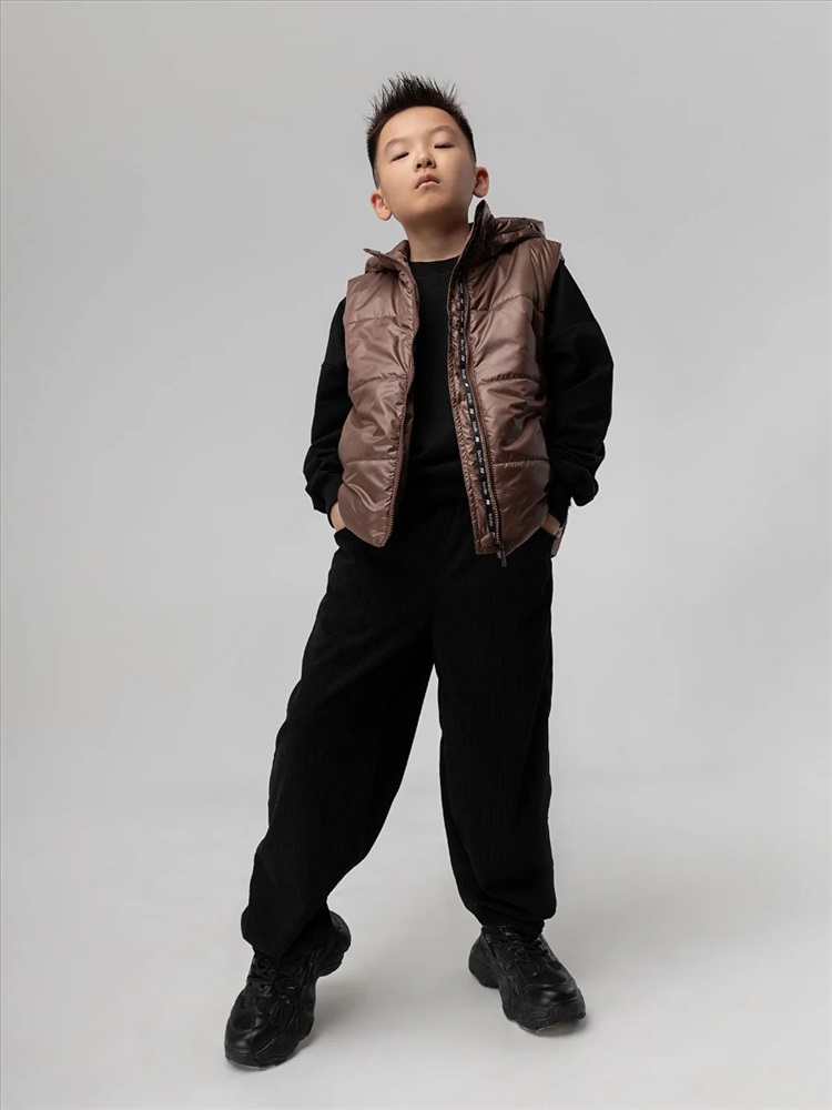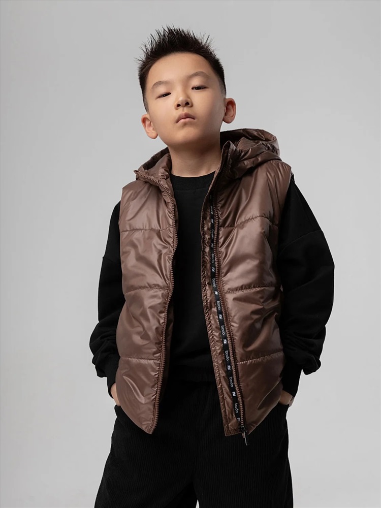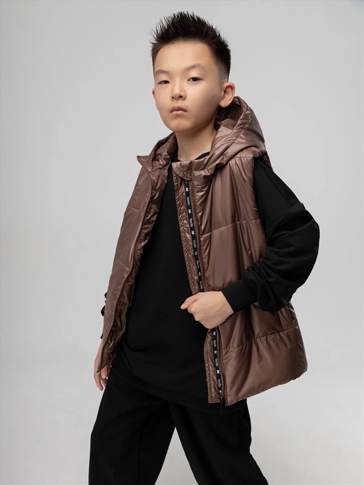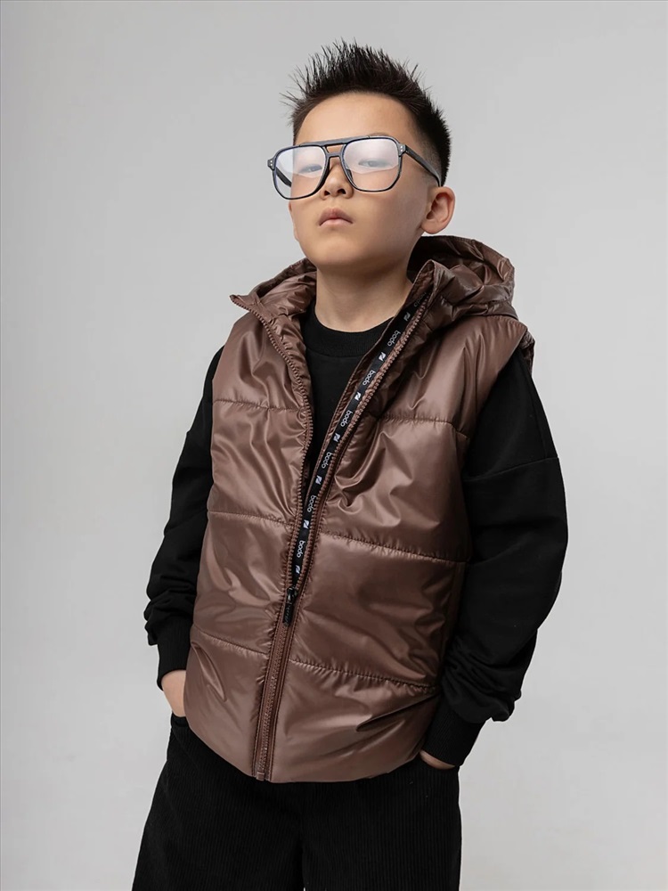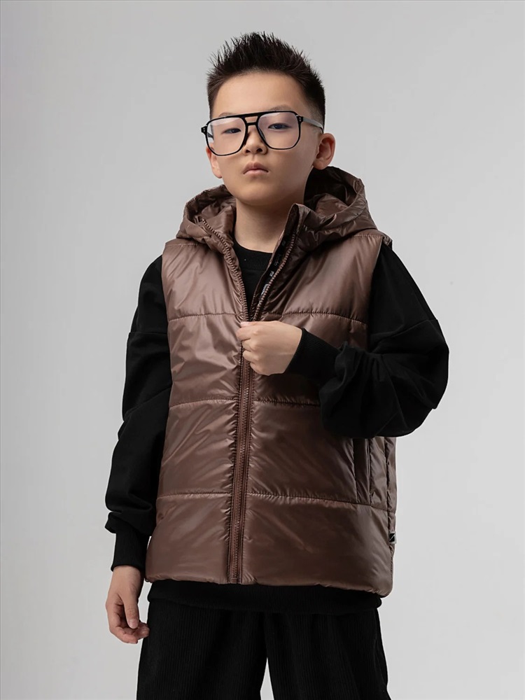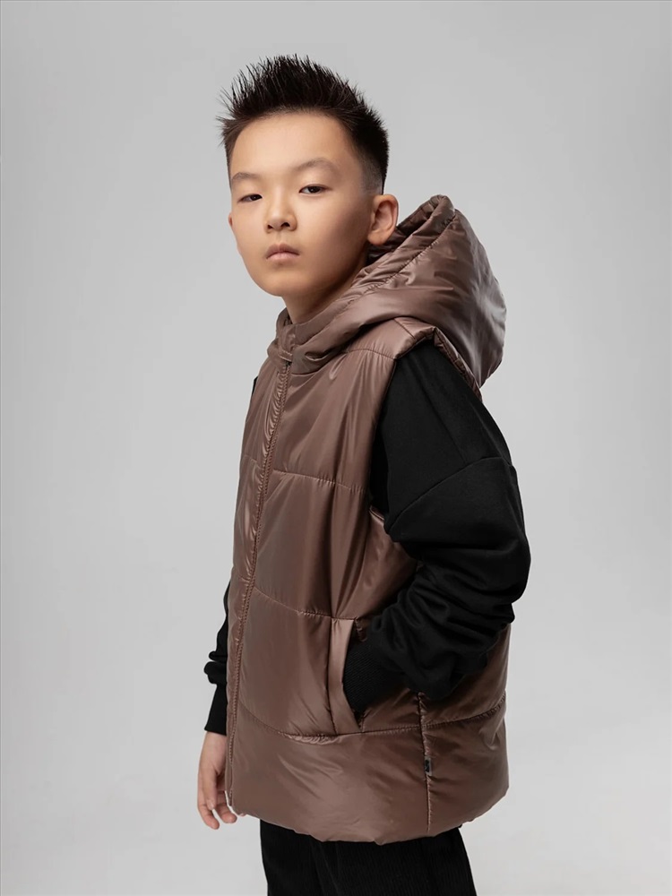 Стильный жилет с капюшоном для детей школьного возраста. Материал жилета FITSYSTEM имеет специальное водонепроницаемое и водоотталкивающее покрытие и пропитку, защищает от дождя, влаги и ветра. Материал верха: Fitsystem Style 100% полиэстер, утеплитель Hetta micro premium S4-K 150 г/кв.м, подкладочный материал кулирная гладь 100% хлопок