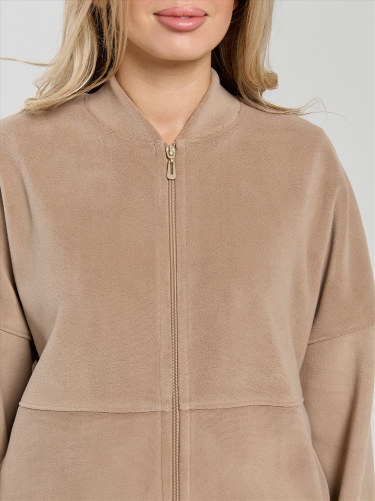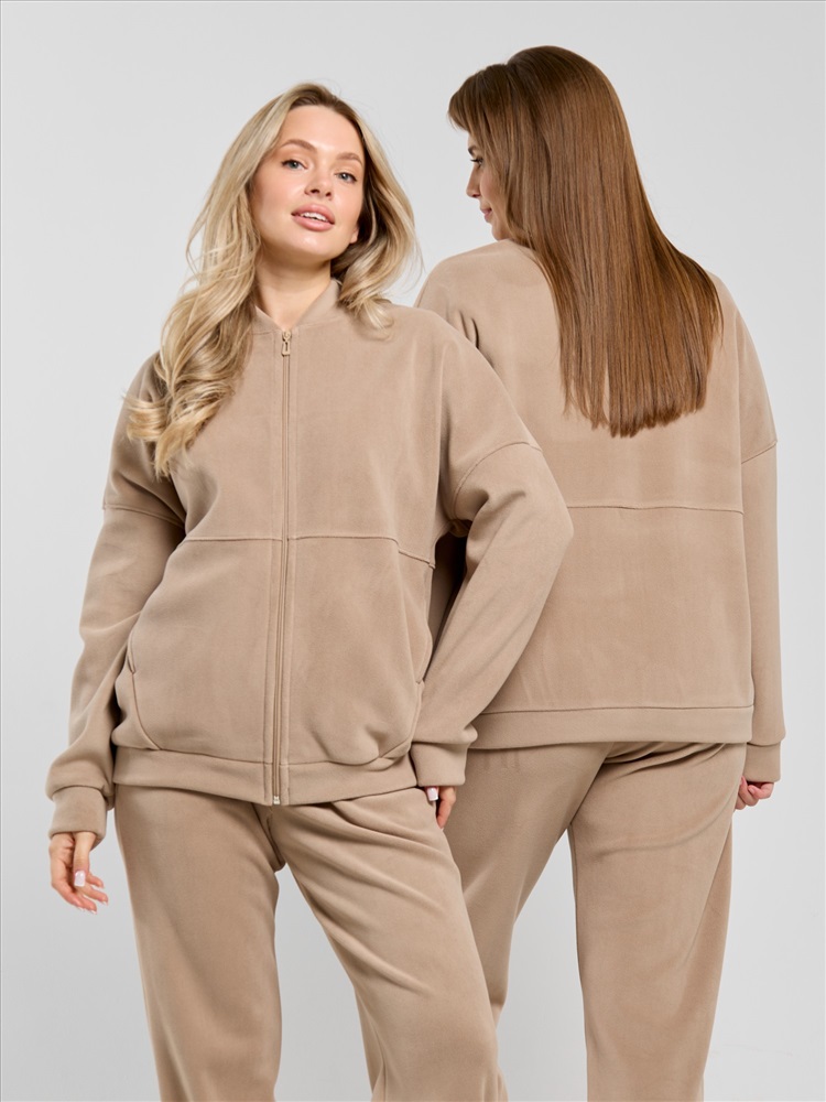 Состав: 94% ПЭ, 6% спандекс Ткань: Даблфлис Куртка-бомбер – молодежная из гладкокрашенного трикотажного полотна «дабл-флис» (двухсторонний флис) прямого силуэта, свободная, с длинными втачными рукавами, горловиной овальной формы, обработанной втачной планкой, центральной бортовой застежкой на тесьму «молния». Полочка и спинка состоят из двух деталей, низ изделия с притачным поясом, рукава с притачными манжетами. Пояс, планка горловины, манжеты рукавов выполнены из основного материала.