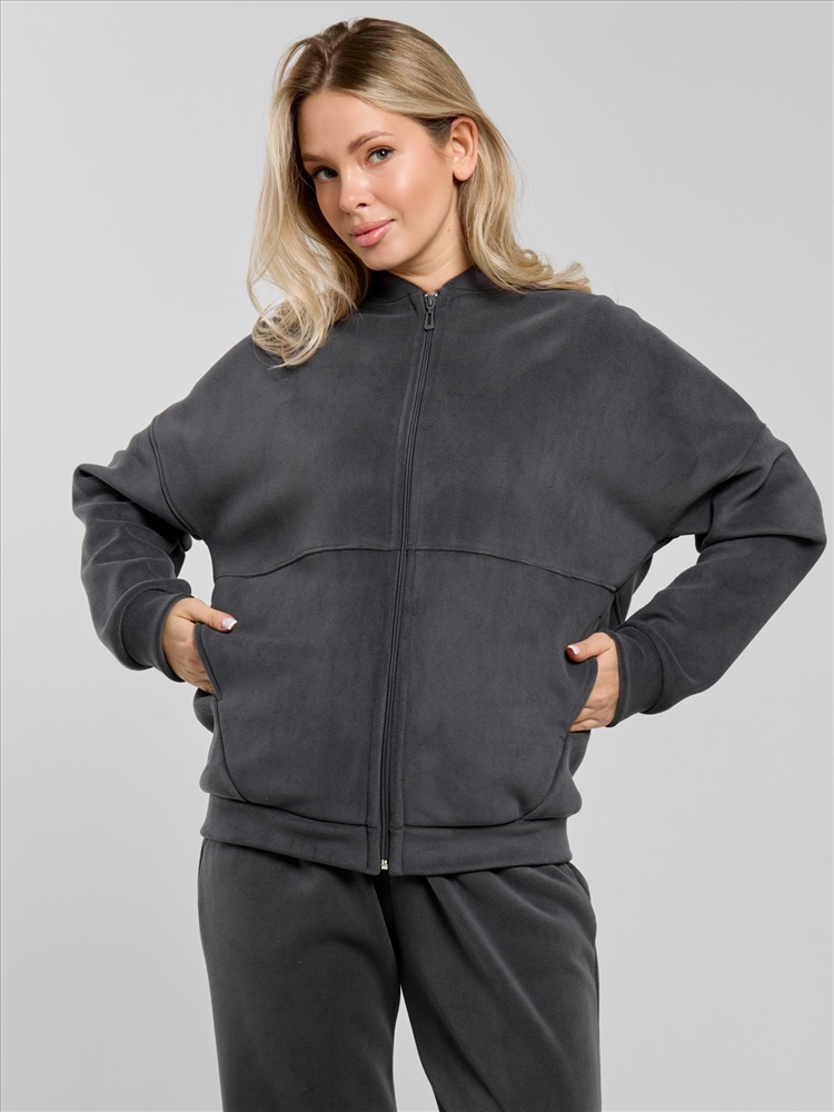 Состав: 94% ПЭ, 6% спандекс Ткань: Даблфлис Куртка-бомбер – молодежная из гладкокрашенного трикотажного полотна «дабл-флис» (двухсторонний флис) прямого силуэта, свободная, с длинными втачными рукавами, горловиной овальной формы, обработанной втачной планкой, центральной бортовой застежкой на тесьму «молния». Полочка и спинка состоят из двух деталей, низ изделия с притачным поясом, рукава с притачными манжетами. Пояс, планка горловины, манжеты рукавов выполнены из основного материала.