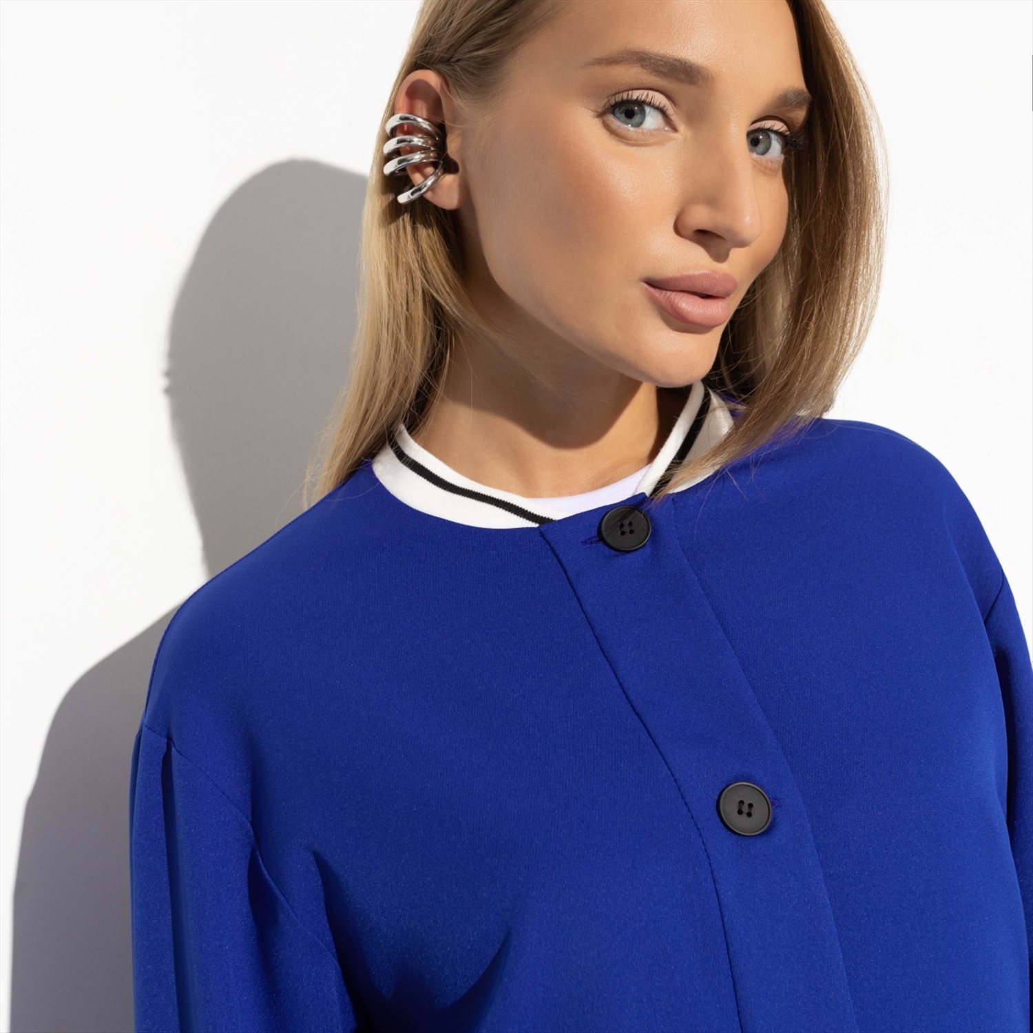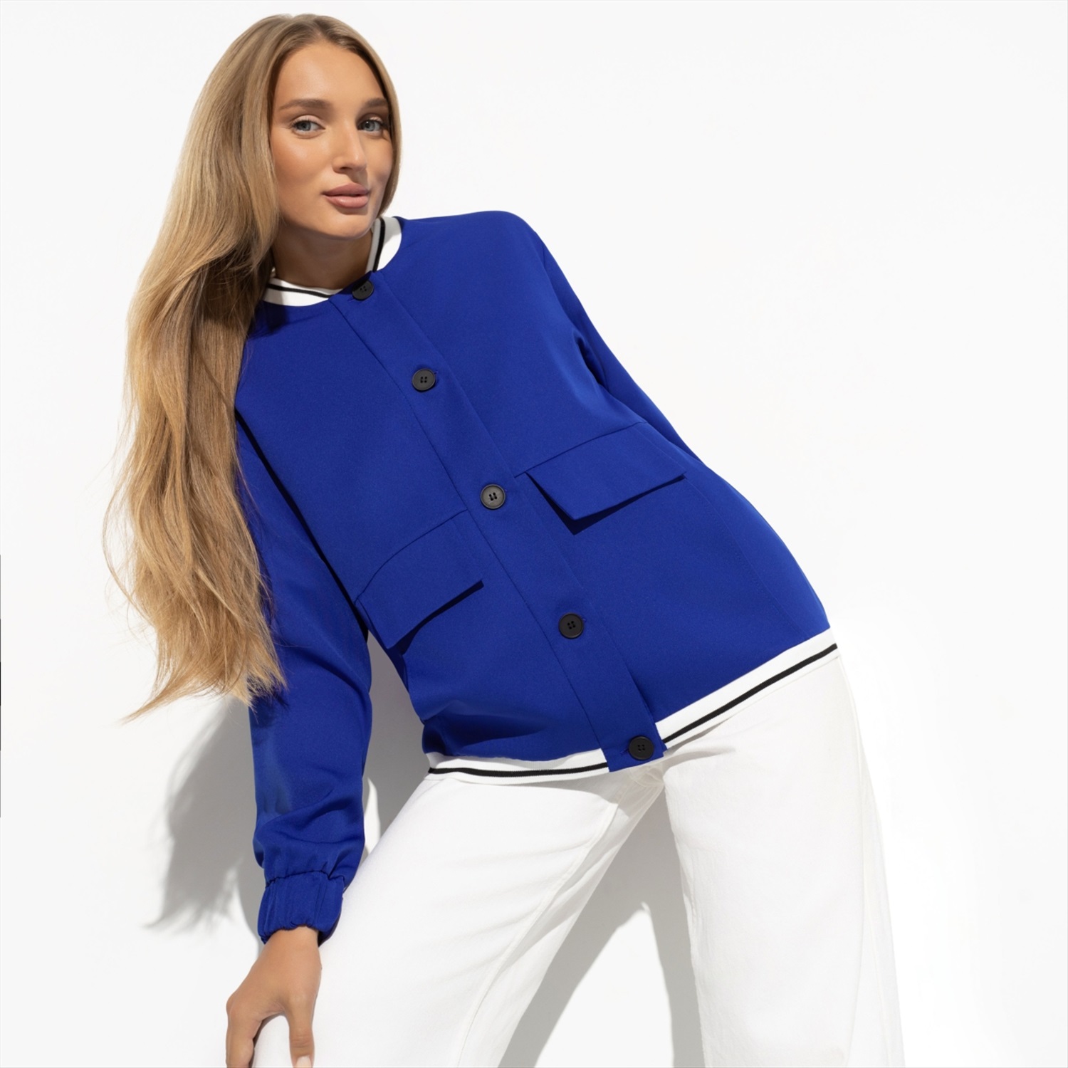 Бомбер «Бунтарка» от CHARUTTI — это идеальное сочетание дерзости и элегантности. Изготовленный из высококачественной поливискозы, состоящей на 67% из полиэстера, на 30% из вискозы и на 3% из спандекса, он сочетает в себе прочность и мягкость. Свободный крой и застежка на крупные пуговицы делают этот бомбер стильным и удобным выбором для любого случая. Рукава оформлены резинкой, что добавляет изделию современный вид и удобство. Наличие подкладки обеспечивает дополнительный комфорт. Заказывая этот бомбер оптом, вы получаете возможность предложить своим клиентам уникальный продукт, который станет хитом продаж. Этот бомбер — настоящее произведение искусства, воплощающее баланс эстетики в каждой детали. Его можно носить как с повседневной, так и с более формальной одеждой, создавая при этом стильный и современный образ. Поливискоза, из которой изготовлен бомбер, обеспечивает отличную воздухопроницаемость и долговечность, что делает его идеальным выбором для любой погоды. Заказывая этот бомбер оптом, вы сможете удовлетворить спрос на модную и качественную одежду среди своих клиентов. Бомбер «Бунтарка» станет незаменимой частью гардероба ваших клиентов. Его универсальный дизайн позволяет легко сочетать его с различными элементами одежды, создавая как повседневные, так и более официальные образы. Крупные пуговицы и резинка на рукавах придают бомберу современный и стильный вид, который привлечет внимание и подчеркнет индивидуальность. Заказывая оптом, вы получаете возможность предложить своим клиентам модный и востребованный продукт, который будет пользоваться популярностью.