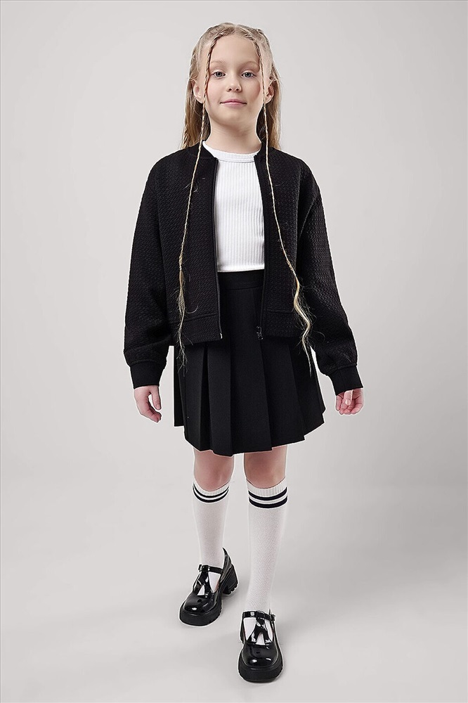 ID товара: 1188678 Состав: 86% Полиэстер, 12% Вискоза, 2% Эластан Сезон: Демисезон Длина: Средняя Фасон: Свободный Рукав: Длинные Вид застежки: Молния Вырез горловины: Воротник-стойка Основная ткань: Полиэстер Стиль: повседневный Страна бренда: Россия Страна производства: Россия Стильный бомер из капитония станет модной новинкой в тбвоём гардеробе! Комфортная посадка по фигуре, актуальный объём и практичная цветовая гамма- то, что нужно для создания повседневного школьного образа и отличного настроения! Комментарии к товару
