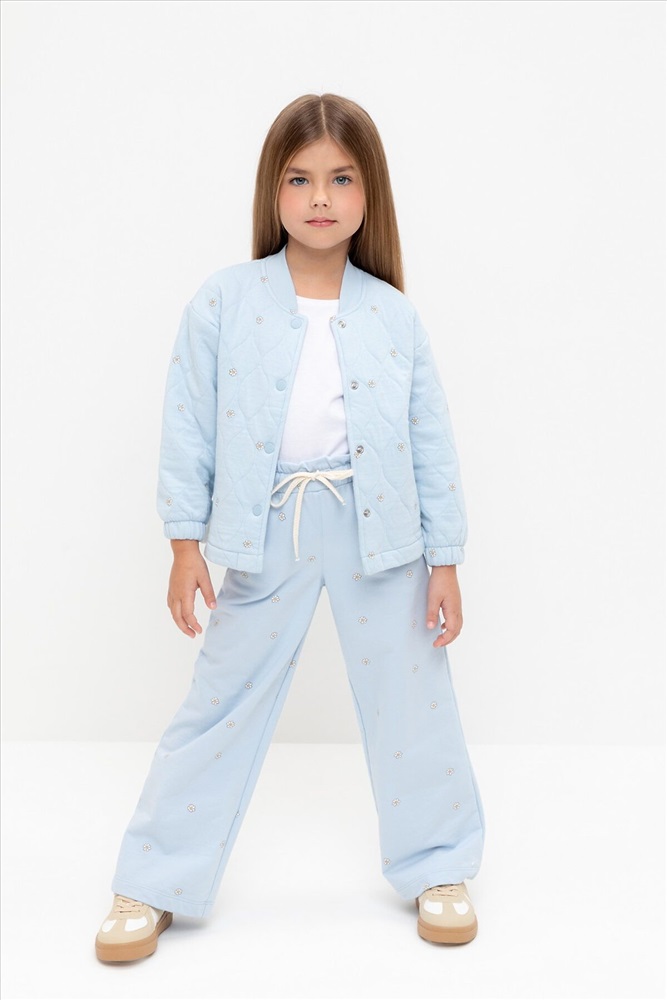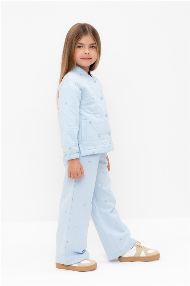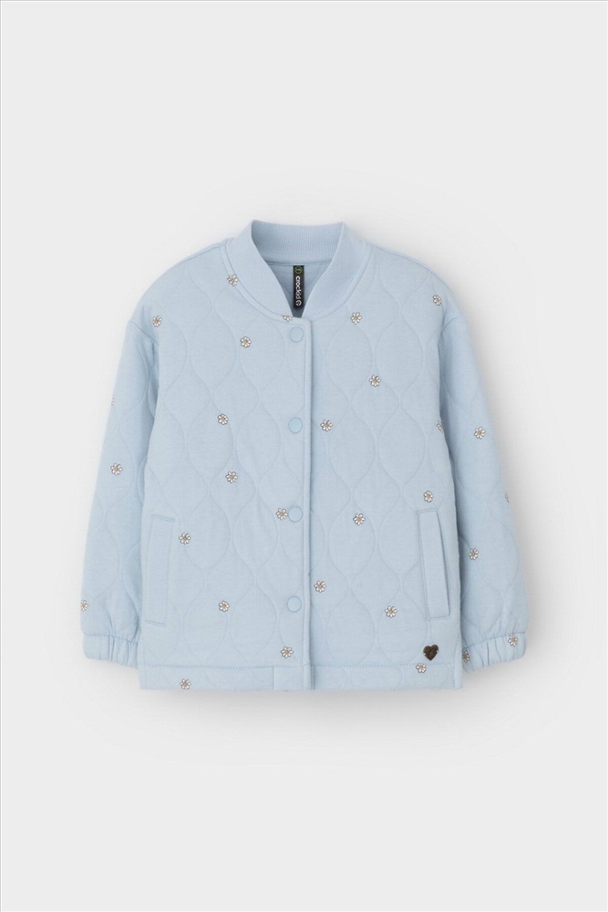 Тёплый бомбер из капитония для девочки. Застёгивается на кнопки. Эластичные манжеты на резинке. Капитоний - это стёганое трикотажное полотно с утеплителем из полиэстеровой нити. Все трикотажные полотна производятся в соответствии с нормами швейцарского сертификата ЭкоТекс.