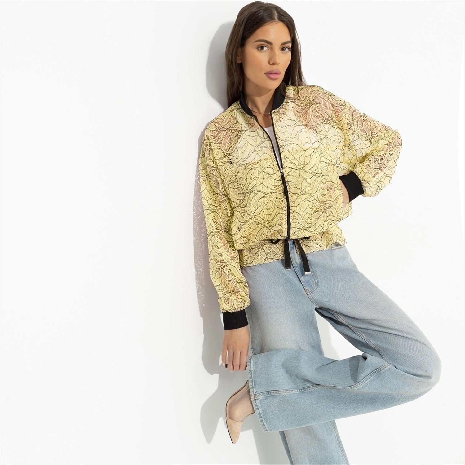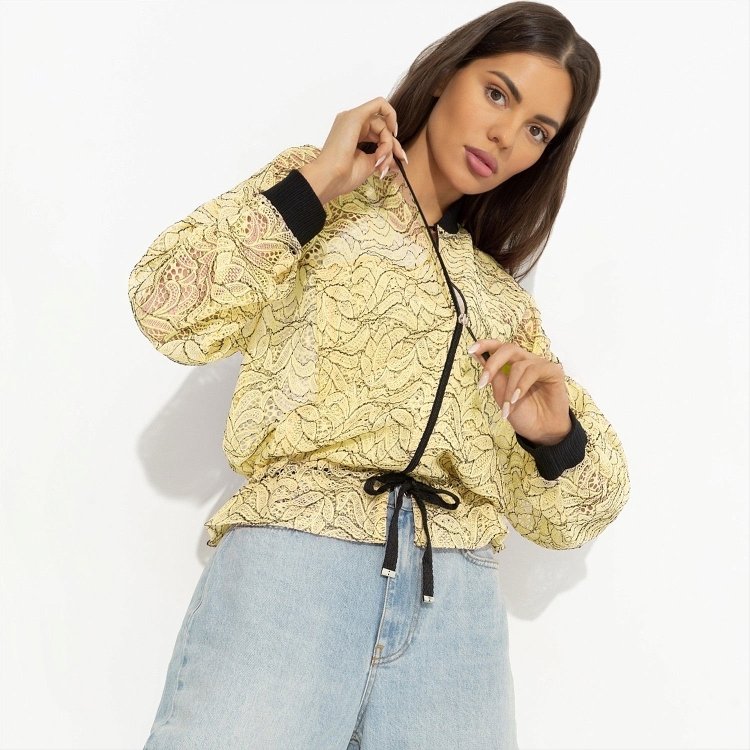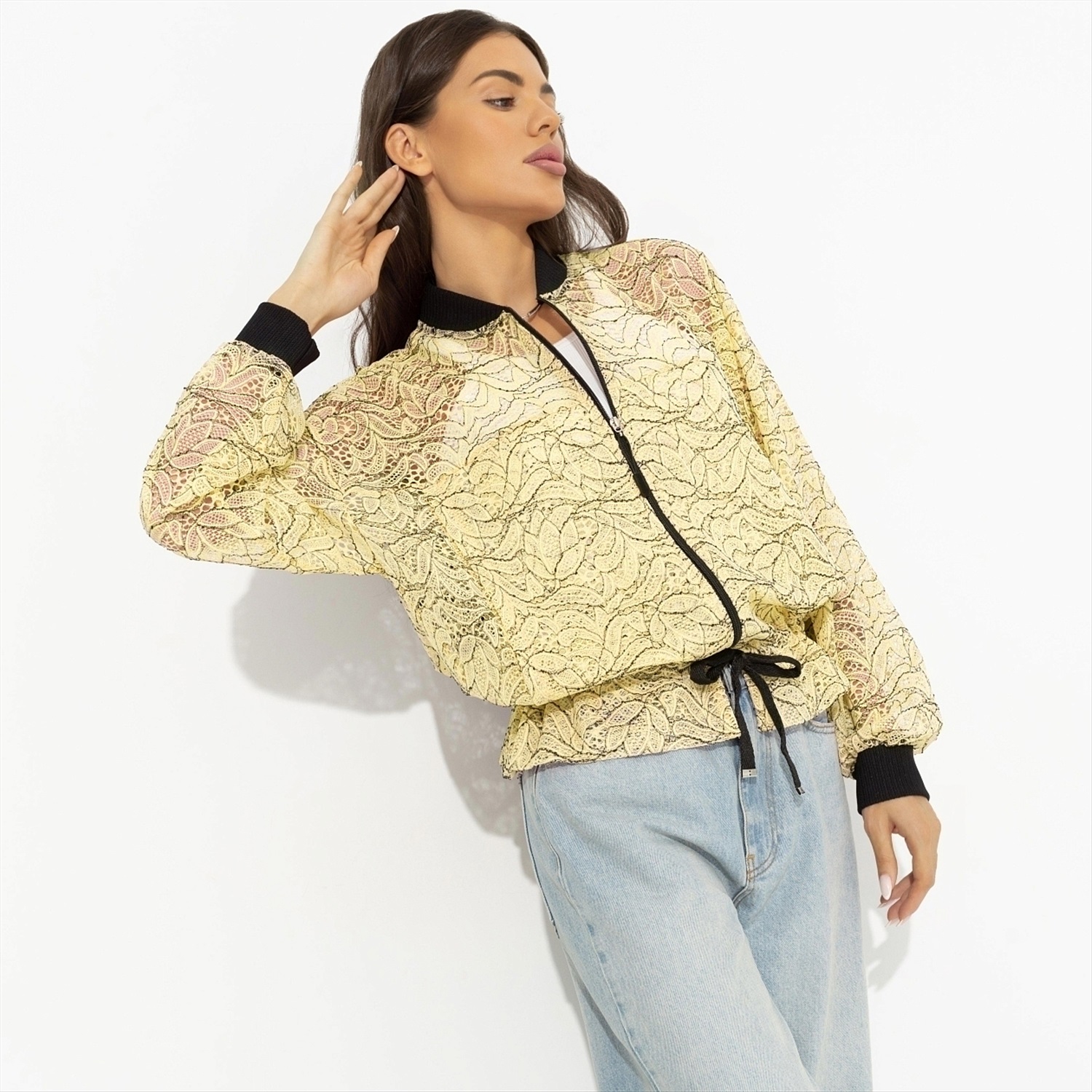 Эпичный бомбер – как маленькая провокация для повседневности. Он зовёт двигаться свободно, ловить взгляды и создавать настроение. Одень его и каждый твой выход станет историей, которую хочется пересказывать. На слово можно не верить, проверить – обязательно стоит. Бомбер свободного кроя на молнии классической длины. Подол на кульске с завязками. Ворот и манжеты оформлены трикотажными резинками.