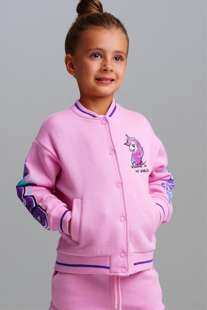Страна производства: Китай Толстовка детская из футера с начесом для девочки. Модный бомбер с высоким содержанием хлопка. Модель из капсульной коллекции UNICORN KUROMI (ЮНИКОРН КОРОМИ). Соберите полный образ в едином стиле! толстовка будет актуальна для детского сада, в садик, для прогулок.