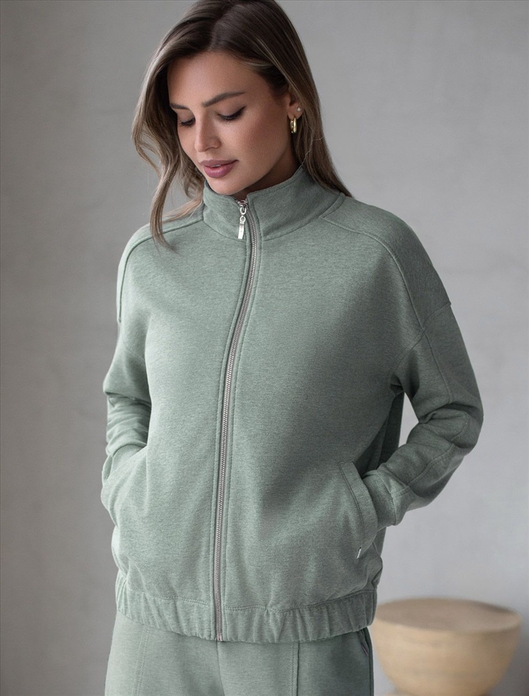 Бомбер оливкового цвета с эффектом меланж среднего объема на молнии с карманами из премиального футера двухнитки — это стильный выбор для ценительниц минимализма и комфорта. Натуральный состав обеспечивает дышащий эффект, мягкость и приятные тактильные ощущения, Эластичный материал позволяет свободно двигаться без лишнего стеснения, а также отлично сохраняет форму даже после длительного ношения. Манжеты на рукавах и резинка по низу обеспечивают надежную посадку, сохраняя тепло в прохладную погоду. Повседневный бомбер отличается аккуратным силуэтом без лишнего объема и универсальной длиной, которая идеально подходит для повседневного и спортивного образа. Прорезные карманы по бокам добавляют функциональности, сохраняя при этом стильный внешний вид. Представленная размерная линейка позволяет подобрать оптимальный вариант для любой фигуры и размера, на маленький или плюс сайз, обеспечивая свободу движений без компромиссов по стилю. Этот легкий бомбер станет отличным дополнением к базовому гардеробу, сочетая практичность с элегантностью. Вы можете составить комплект с брюками D44.157 и свитшотом D49.139.