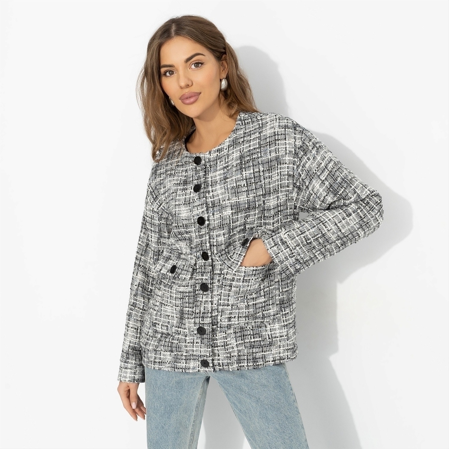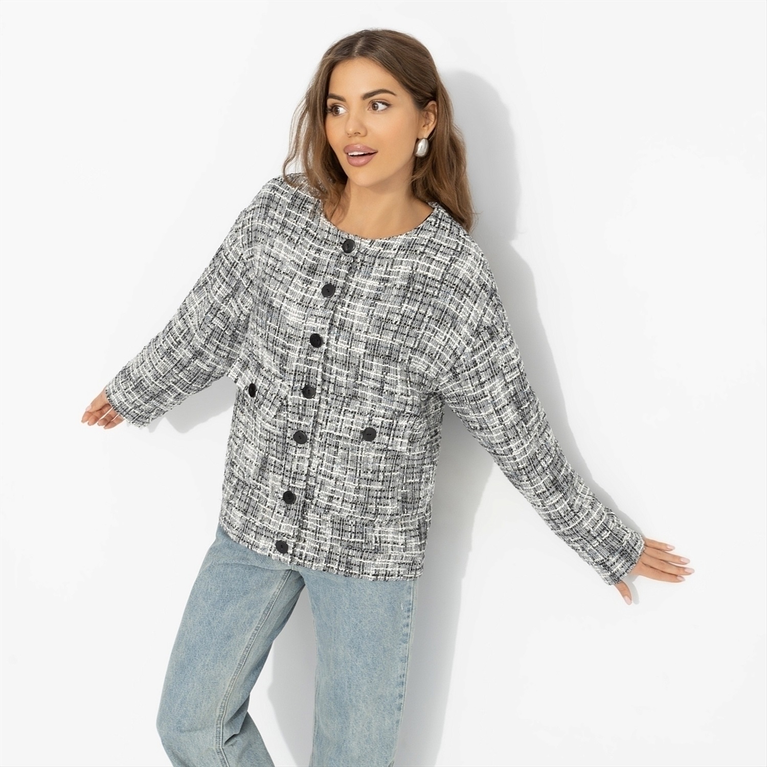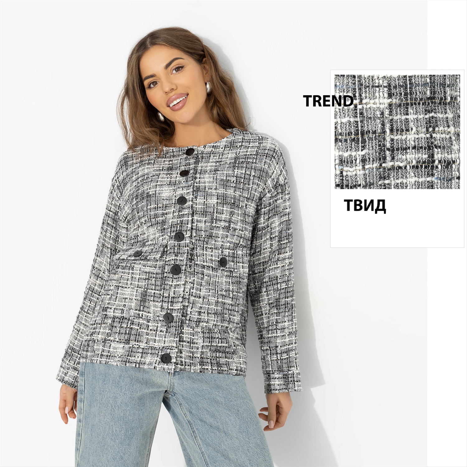 Состав: Твид (65% п/э, 30% вискоза, 5% эластан) Плотность ткани: Средняя Тип ткани: Текстиль Вид застежки: Пуговица/-ы Дополнительный цвет ткани: Черный Карманы: Накладные Основной цвет ткани: Серый Подклад: Есть Резинка по талии: Нет Рисунок/раппорт: Нет, все изделия идентичны Сезон: Демисезон Силуэт: Свободный