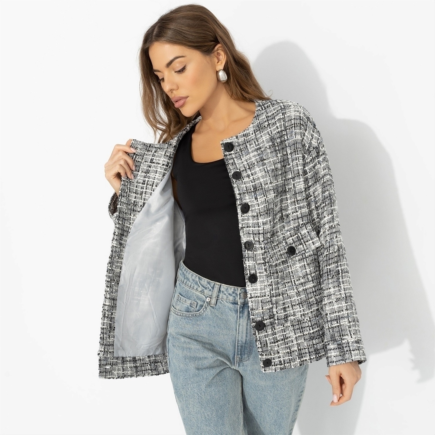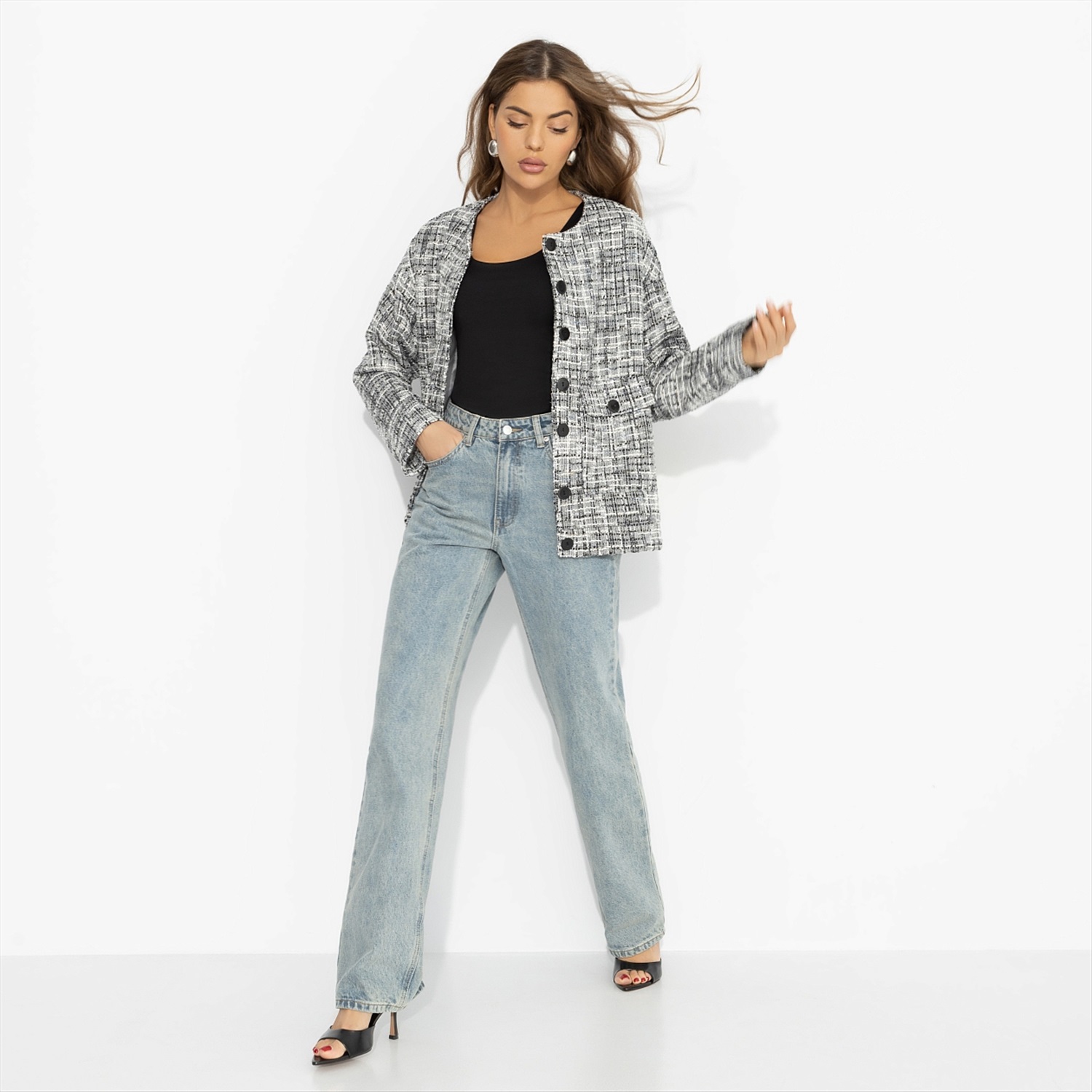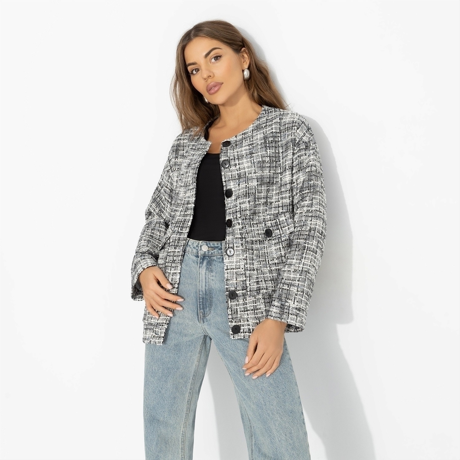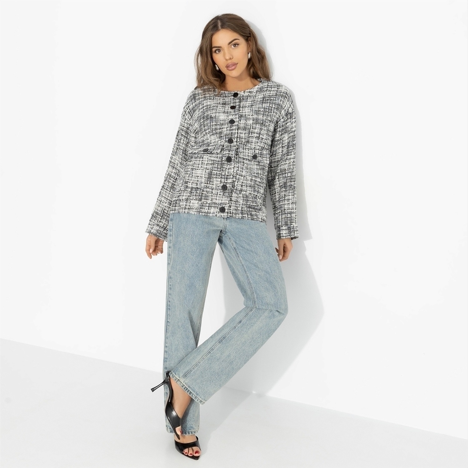 Стилисты уверены: твид больше не живёт только в классике − он выходит в город, играя по новым правилам. Ты надеваешь новый бомбер от ЧАРУТТИ с любимыми джинсами и понимаешь − стиль может быть умным и лёгким одновременно. Бомбер из твида очень фактурный, особенный, добавляет твоему стилю глубины. Сочетание с денимом делает образ современным и динамичным. Классика, которая смогла стать актуальной. Комментарии к товару