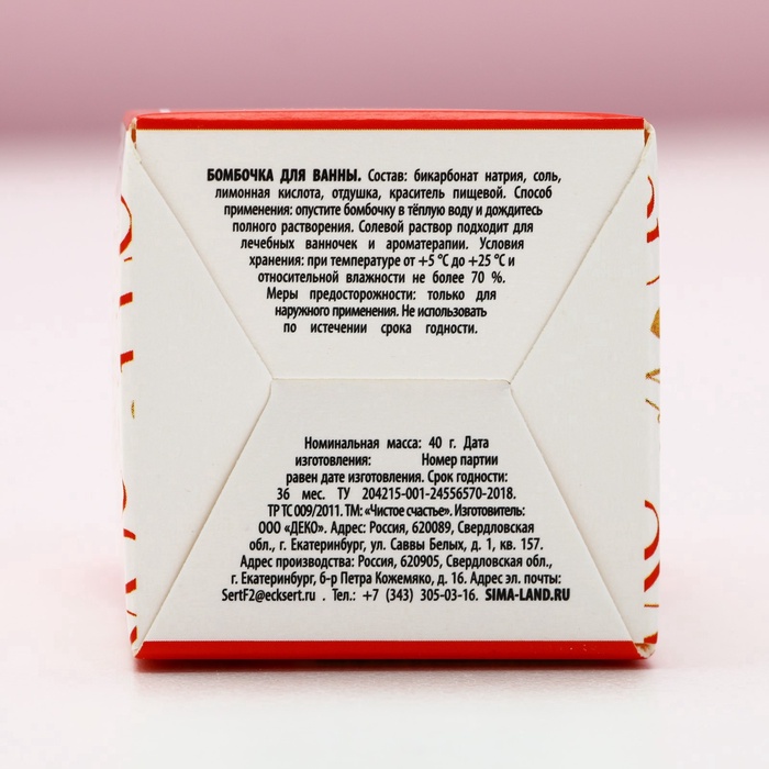 Производитель: Чистое счастье Габариты: 4,5 x 4,5 x 7 Страна: Россия В боксе: 192 шт Состав: См. на упаковке Материалы: см. на упаковке Фасовка: по 1 шт Индивидуальная упаковка: Плёнка Сертификат: ЕАС Набор: Нет Форма: Шар Вес, г: 40 Тематика праздника: 14 Февраля Адресат: Без адресата Аромат: Виноград Составляющие набора: Бомбочка для ванн Темпер. ограничение НЕ НИЖЕ ℃: -25 Возраст: Для взрослых Назначение: Тонизирование Особенности: Без особенностей