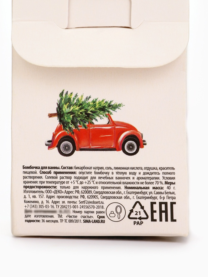 Производитель: Чистое счастье Габариты: 4,5 x 4,5 x 7 Страна: Россия В боксе: 152 шт Состав: См. на упаковке Материалы: см. на упаковке Фасовка: по 1 шт Индивидуальная упаковка: Плёнка Сертификат: ЕАС Набор: Нет Цвет: Жёлтый Для кого: Для женщины Форма: Шар Вес, г/Объём, мл: 40 Вес, г: 40 Тематика: Новогодняя Вид упаковки: Подарочная коробка Символ года: Нет Тематика праздника: Новый год Адресат: Без адресата Область применения: Для тела Аромат: Банановый кекс Темпер. ограничение НЕ НИЖЕ ℃: +5 Темпер. ограничение НЕ ВЫШЕ ℃: +25 Возраст: Для взрослых Возраст: Для всех возрастов Назначение: Тонизирование Особенности: Без особенностей