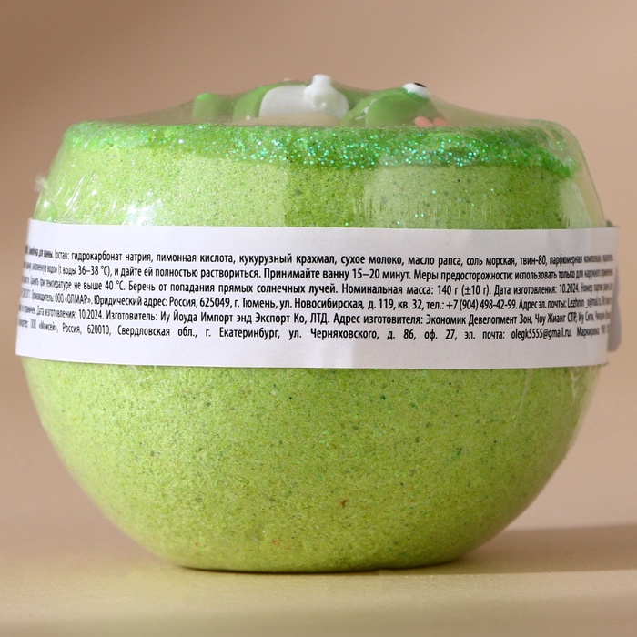 Габариты: 6,5 x 6,5 x 5,5 Страна: Россия В боксе: 11 шт Состав: См. на упаковке Материалы: см. на упаковке Фасовка: по 1 шт Индивидуальная упаковка: Стрейч-пленка Сертификат: ЕАС Набор: Нет Цвет: Зелёный Для кого: Для девочки Форма: Фигурная Вес, г/Объём, мл: 130 Вес, г: 130 Вид упаковки: Термоусадочная плёнка Тематика праздника: Универсальная тематика Адресат: Без адресата Область применения: Для тела Аромат: Яблоко Возраст: Для детей Назначение: Тонизирование Особенности: С игрушкой Гидрокарбонат натрия, лимонная кислота, кукурузный крахмал, сухое молоко, масло рапса, соль морская, твин-80, парфюмерная композиция, краситель. Комментарии к товару