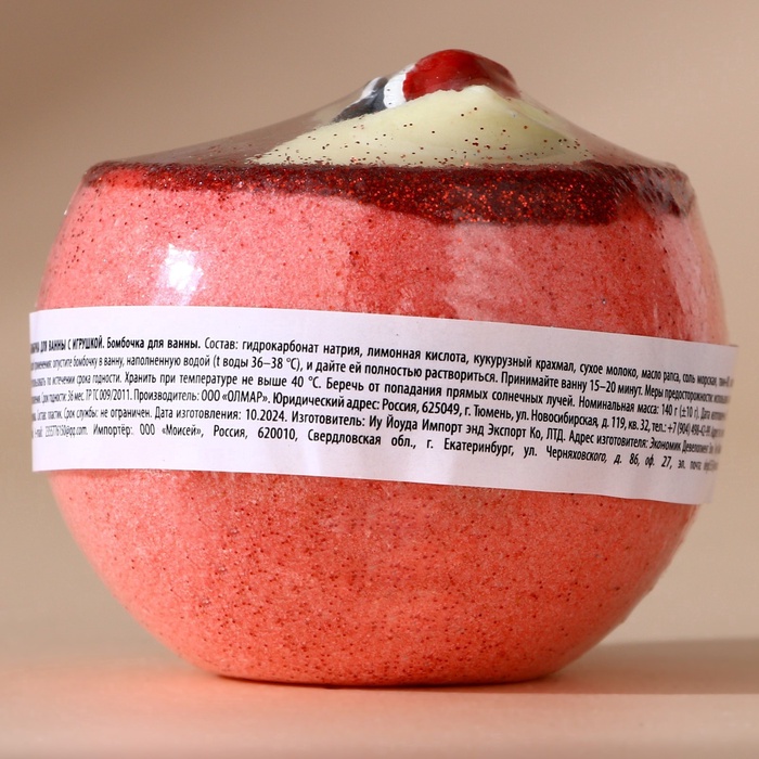 Габариты: 6,5 x 6,5 x 5,5 Страна: Россия В боксе: 11 шт Состав: См. на упаковке Материалы: см. на упаковке Фасовка: по 1 шт Индивидуальная упаковка: Стрейч-пленка Сертификат: ЕАС Набор: Нет Цвет: Розовый Для кого: Для девочки Форма: Фигурная Вес, г/Объём, мл: 130 Вес, г: 130 Вид упаковки: Термоусадочная плёнка Тематика праздника: Новый год Адресат: Без адресата Область применения: Для тела Аромат: Вишня Возраст: Для детей Назначение: Тонизирование Особенности: С игрушкой Гидрокарбонат натрия, лимонная кислота, кукурузный крахмал, сухое молоко, масло рапса, соль морская, твин-80, парфюмерная композиция, краситель. Комментарии к товару